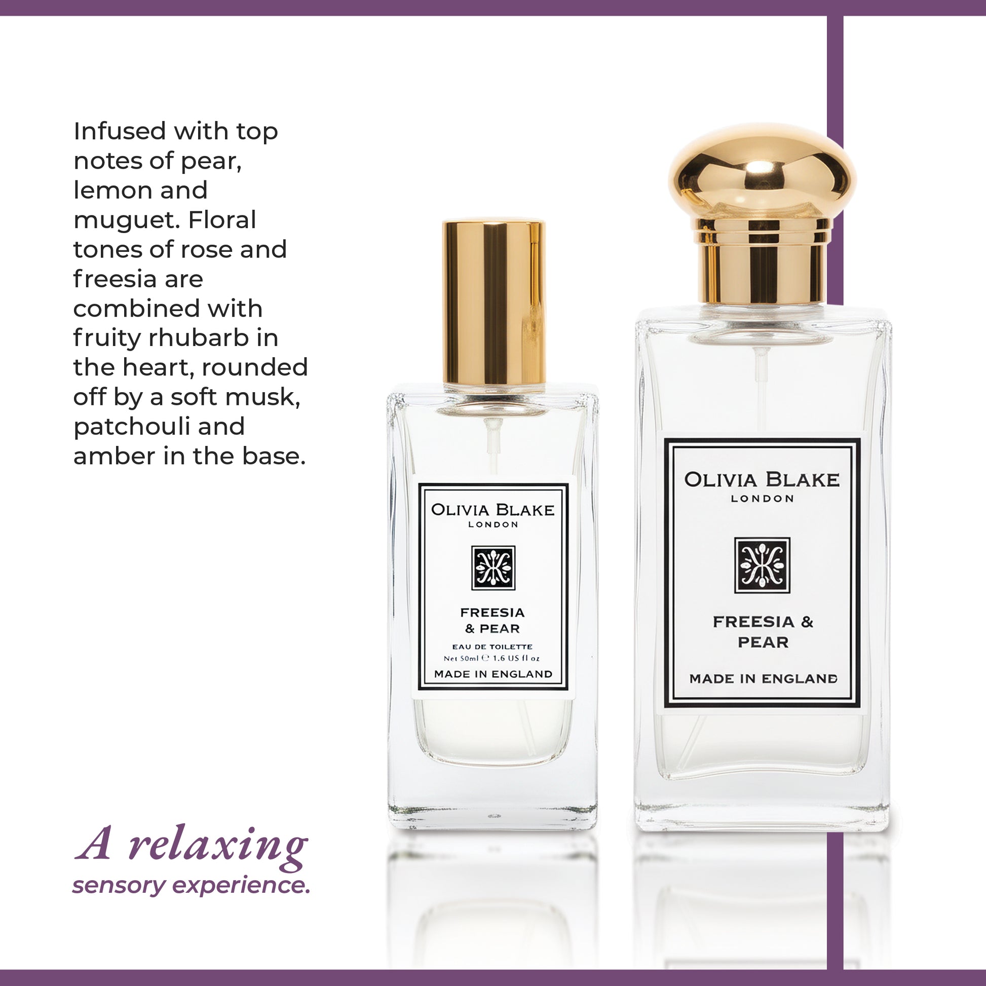 ndulge in the elegance of fine fragrance with the Olivia Blake Freesia & Pear Duo Gift Set. This beautifully presented set includes a 100 ml Eau de Cologne and a 50 ml Eau de Toilette, both infused with a fruity floral blend of pear, lemon, rose, freesia, and rhubarb, softened by musk, patchouli, and amber. Together, these two fragrances give you versatility for both everyday wear and special occasions, ensuring you always feel fresh, confident, and effortlessly elegant.