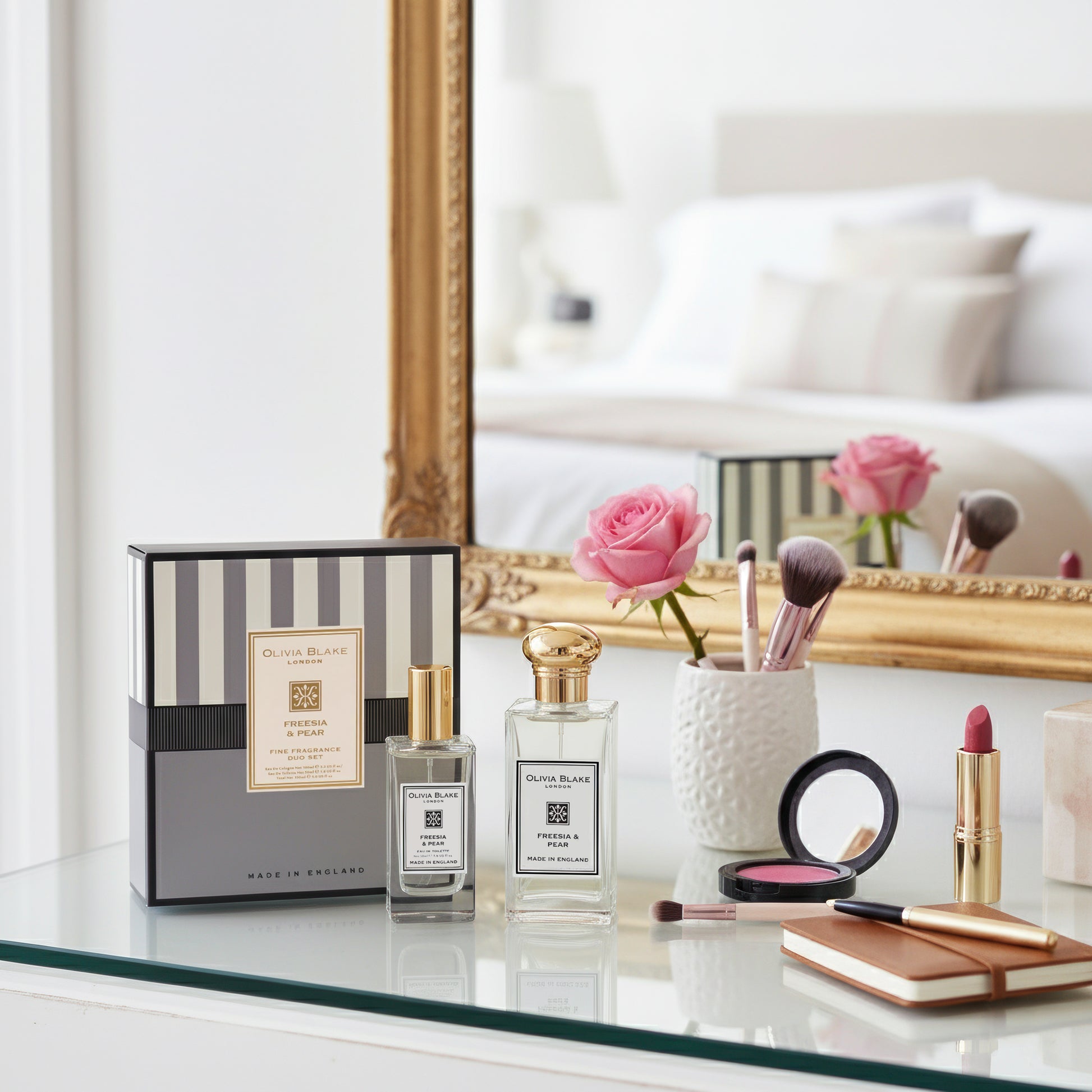 Olivia Blake Fine Fragrance Freesia & Pear Duo Gift Set – 100 ml/3.38 fl oz Eau de Cologne & 50 ml/1.69 fl oz Eau de Toilette, Fruity Floral Perfume for Women, Made in England