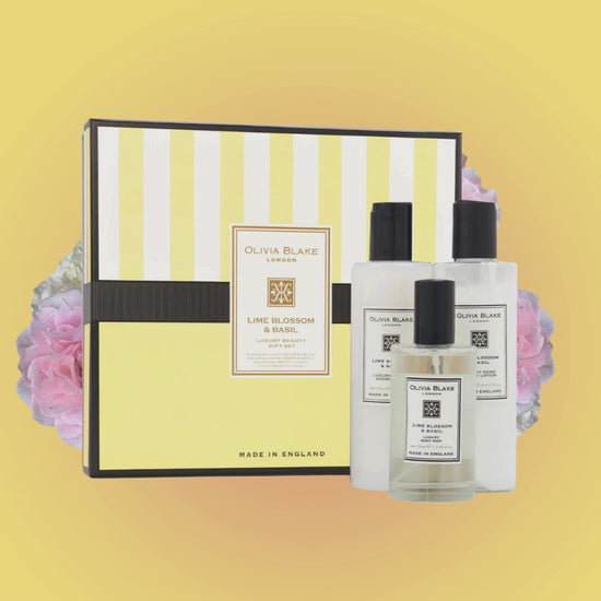 Olivia Blake Lime Blossom & Basil Trio Gift Set – 100 ml/3.38 fl oz Body Mist, 250 ml/8.45 fl oz Shower Gel, 250 ml/8.45 fl oz Body Lotion – Luxurious Everyday Essentials for Women