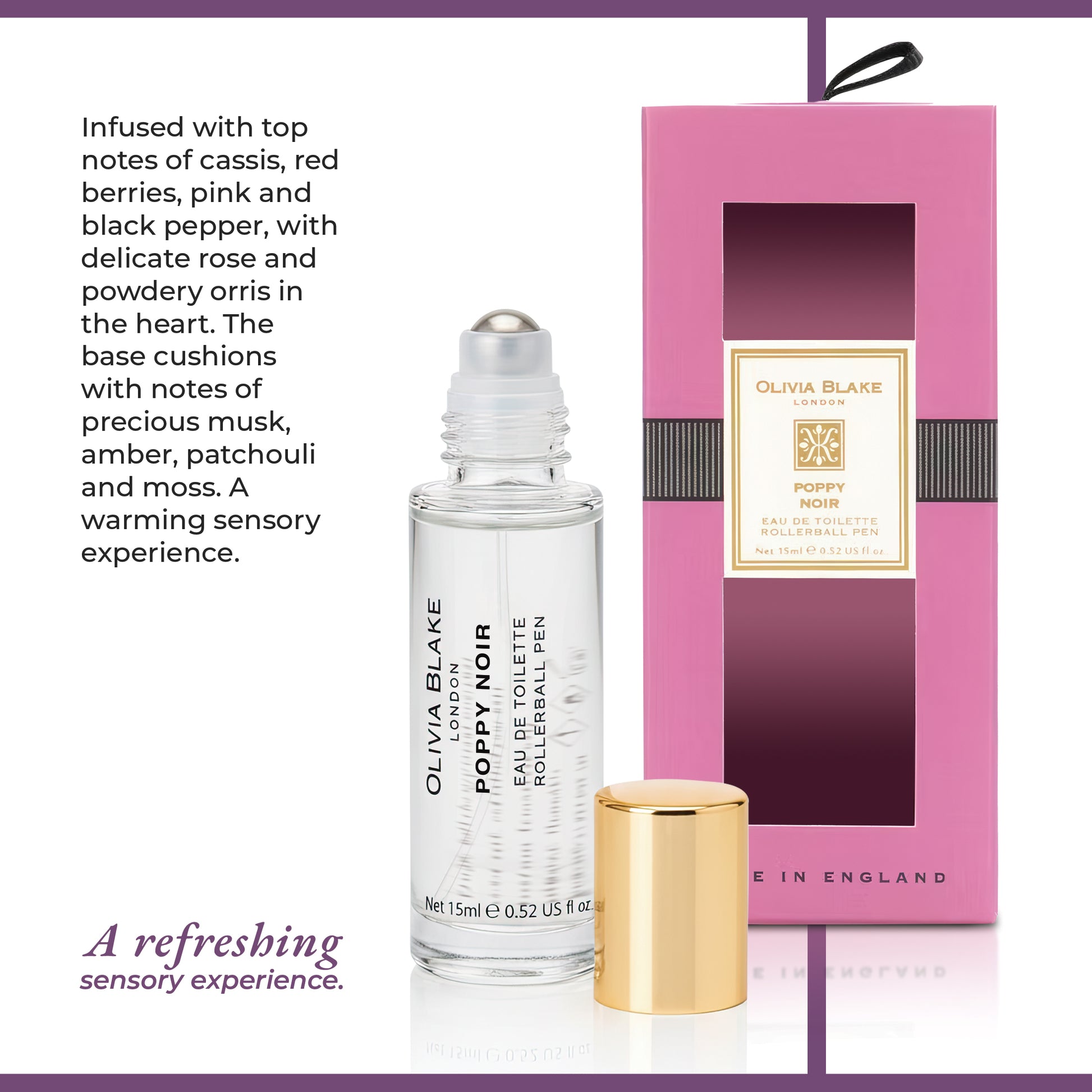 Olivia Blake Poppy Noir Perfume Roller Ball – 15 ml/0.52 fl oz Fine Fragrance Eau de Toilette, Travel Size Perfume for Women