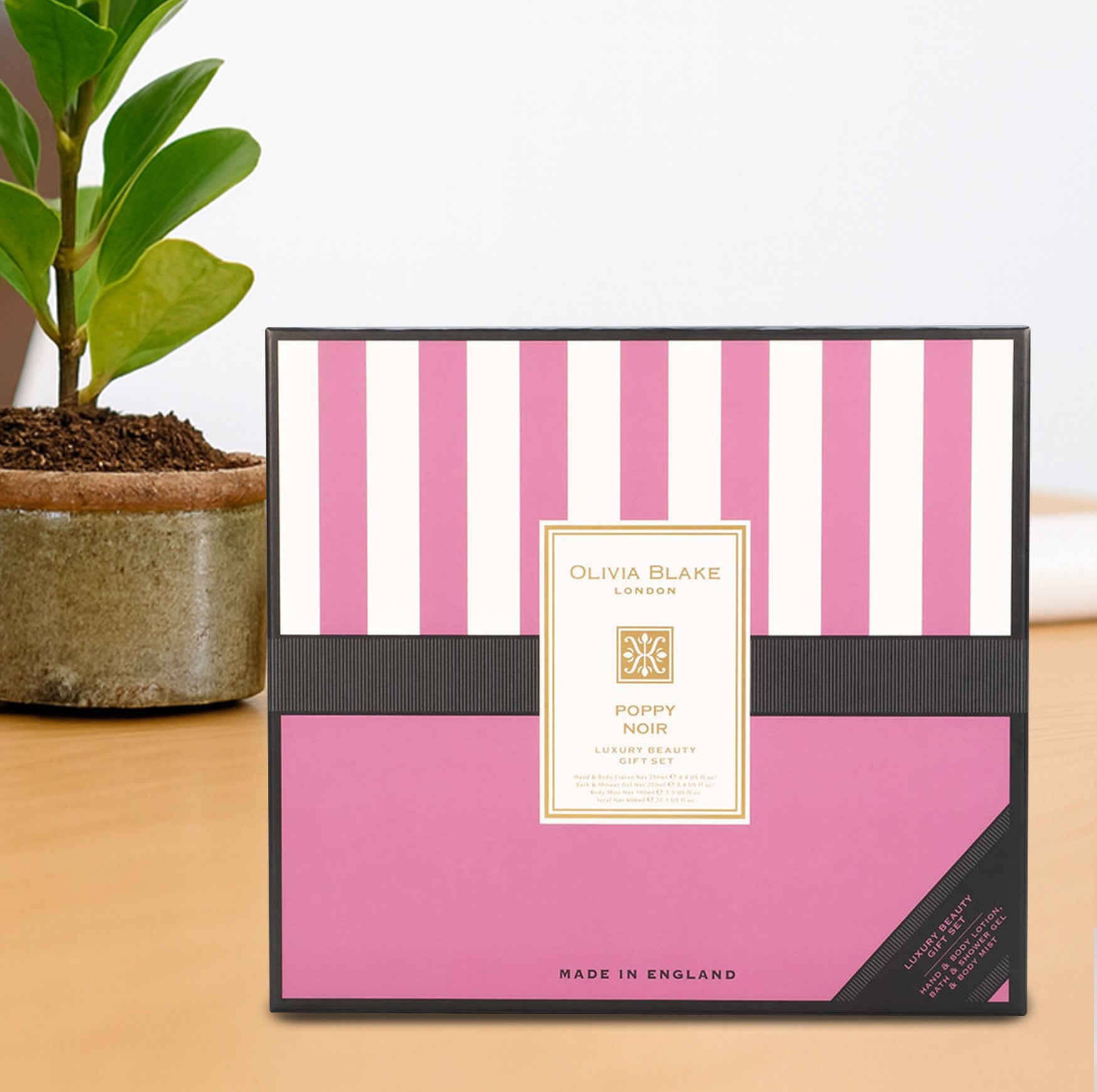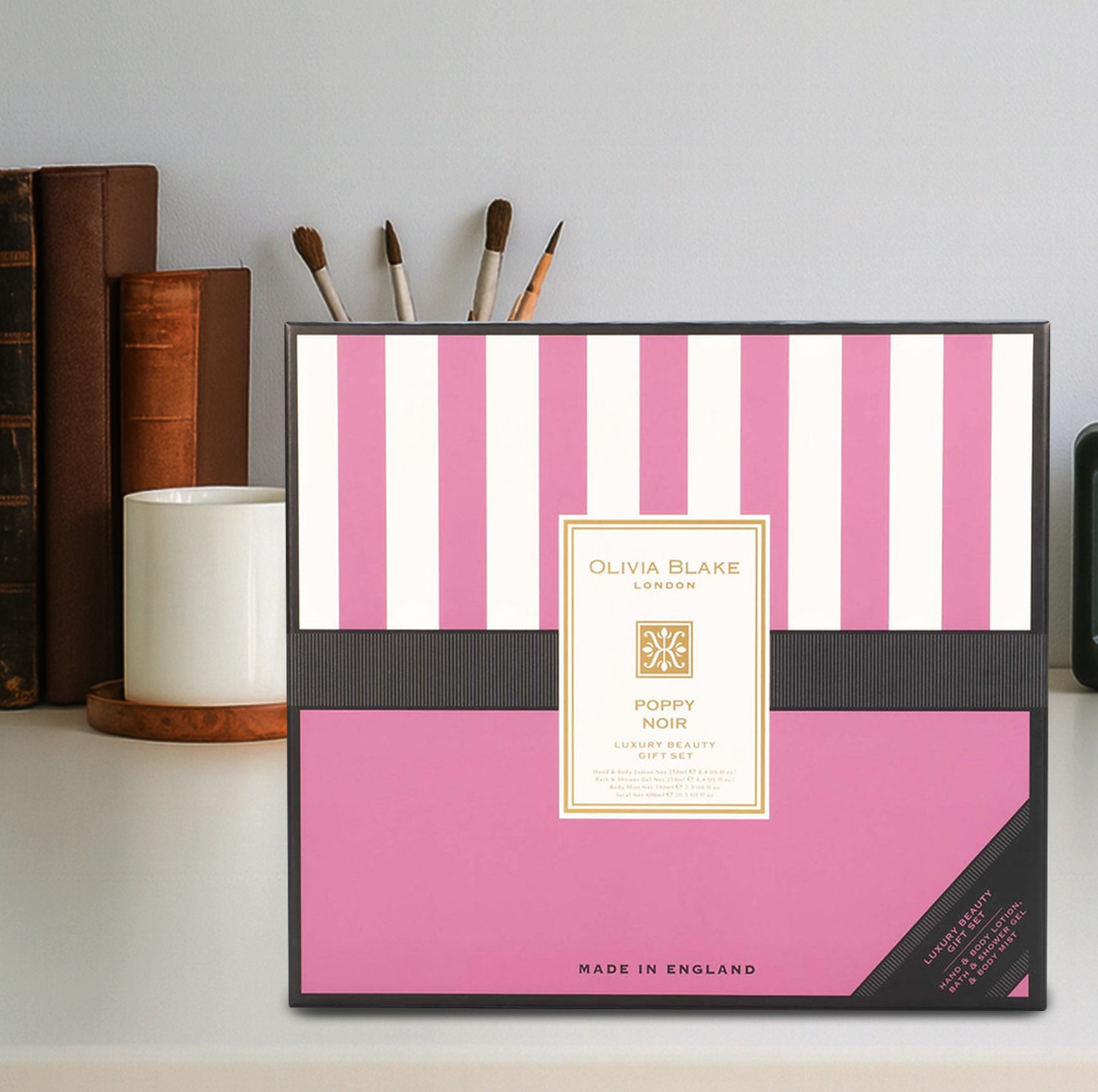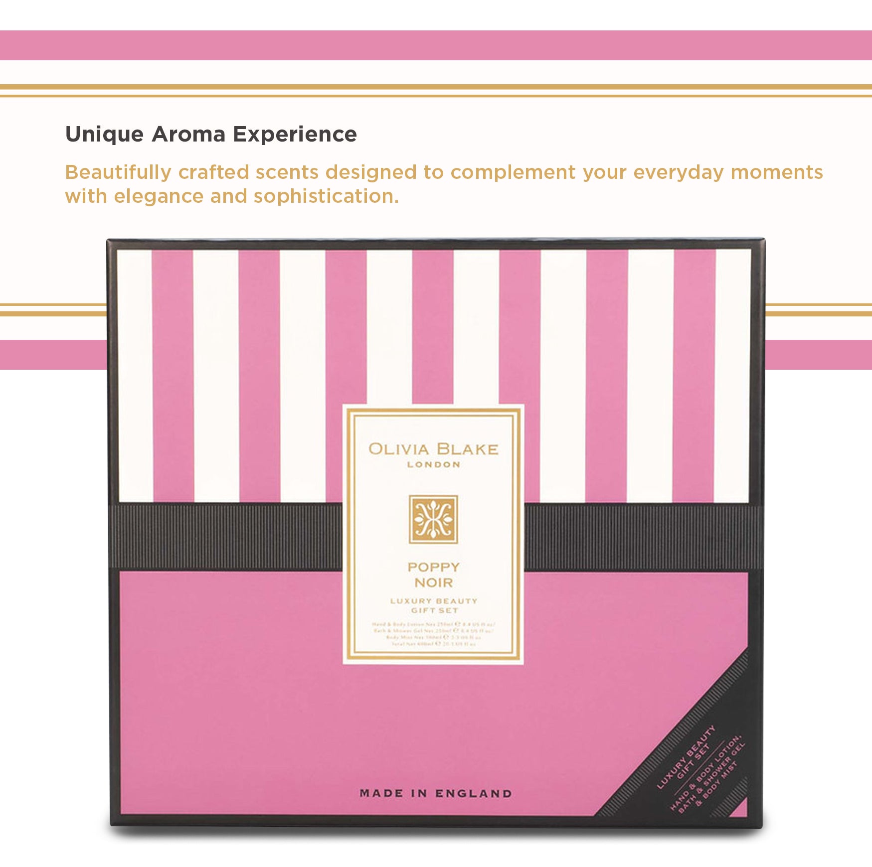 Olivia Blake Poppy Noir Trio Gift Set – 100 ml/3.38 fl oz Body Mist, 250 ml/8.45 fl oz Shower Gel, 250 ml/8.45 fl oz Body Lotion – Luxurious Everyday Essentials for Women