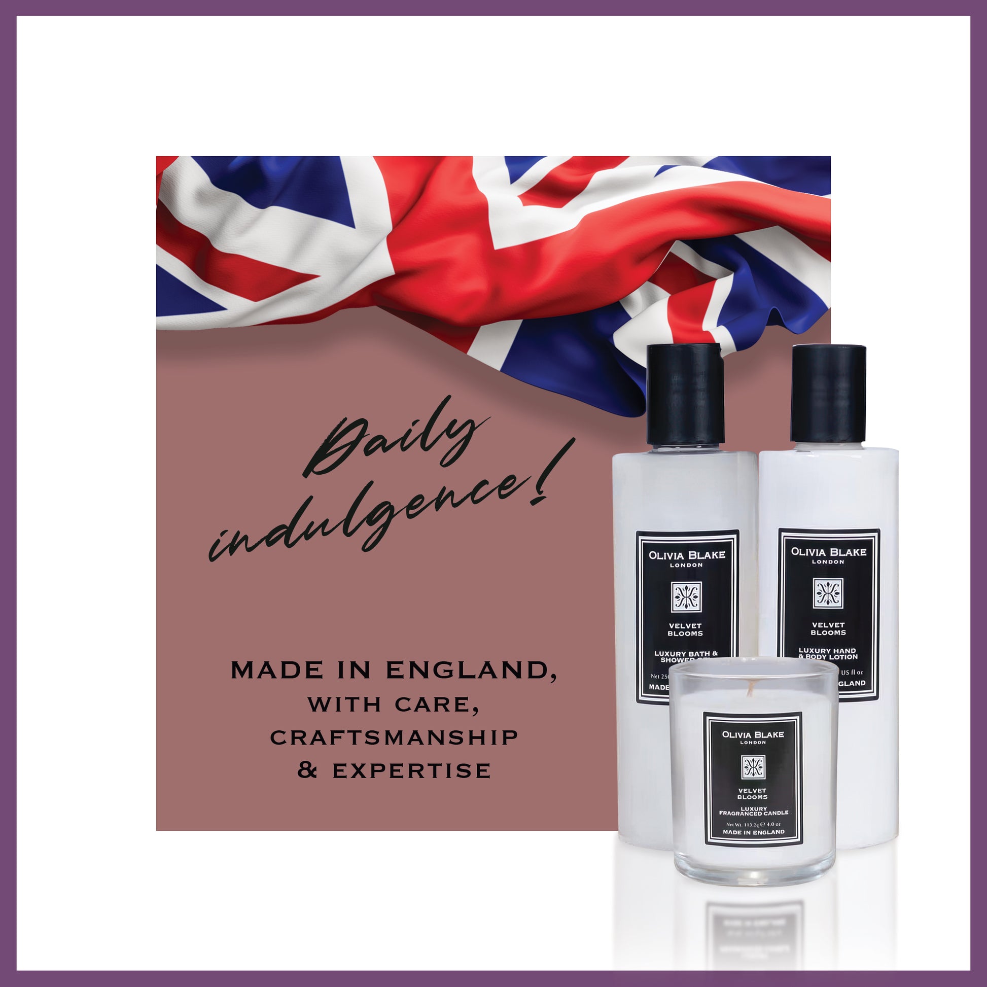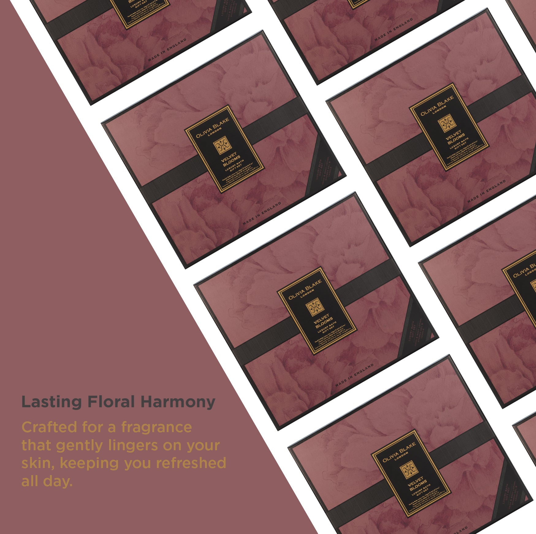 Olivia Blake Velvet Blooms Trio Gift Set – Luxury Bath & Shower Gel 250ml, Hand & Body Lotion 250ml, Fragranced Candle 100ml – Elegant Home & Body Collection, Made in London