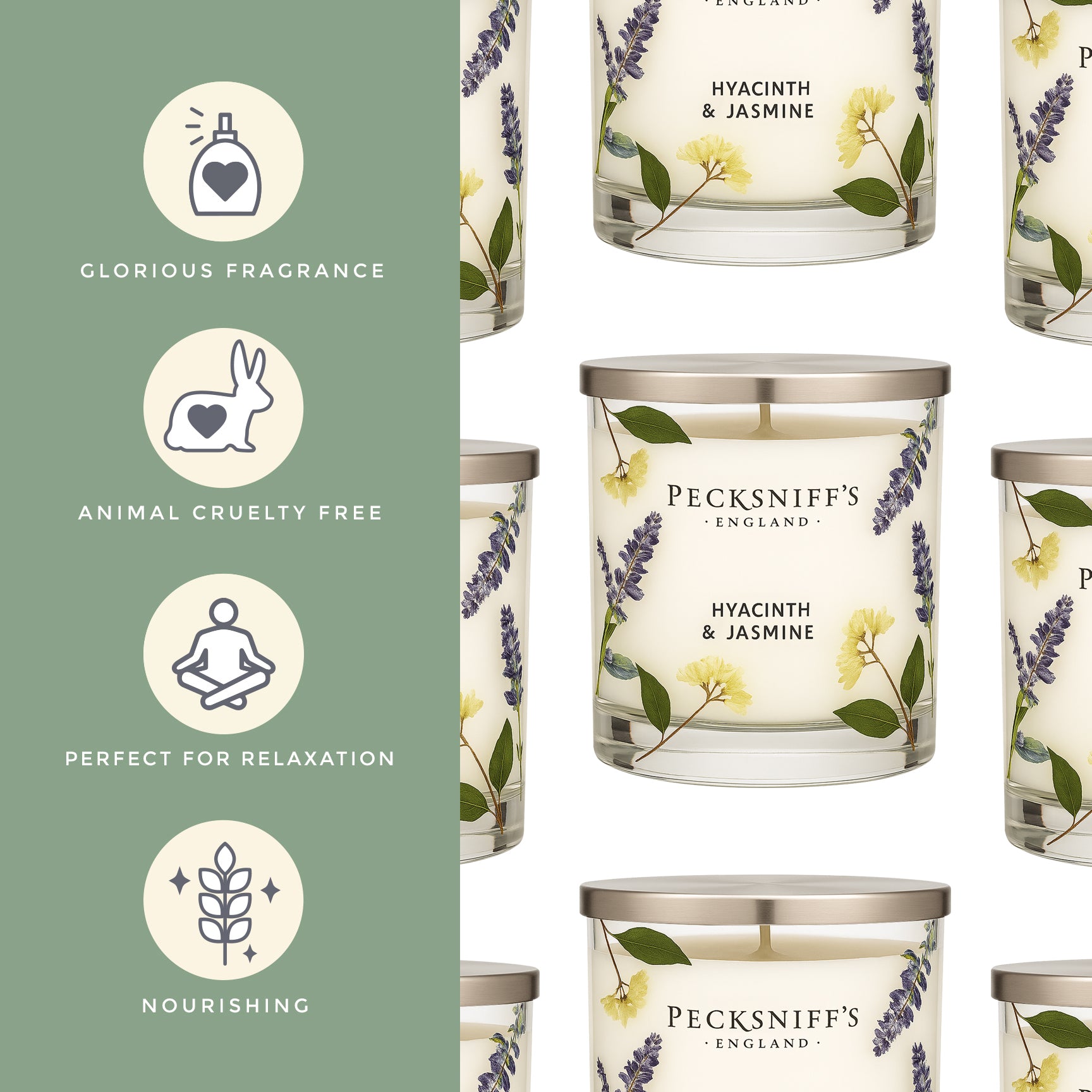 Pecksniff’s 1 Wick Candle – Jasmine & Hyacinth, 184 g / 6.49 oz – Long Lasting Burn, Elegant Home Decor & Relaxing Ambiance