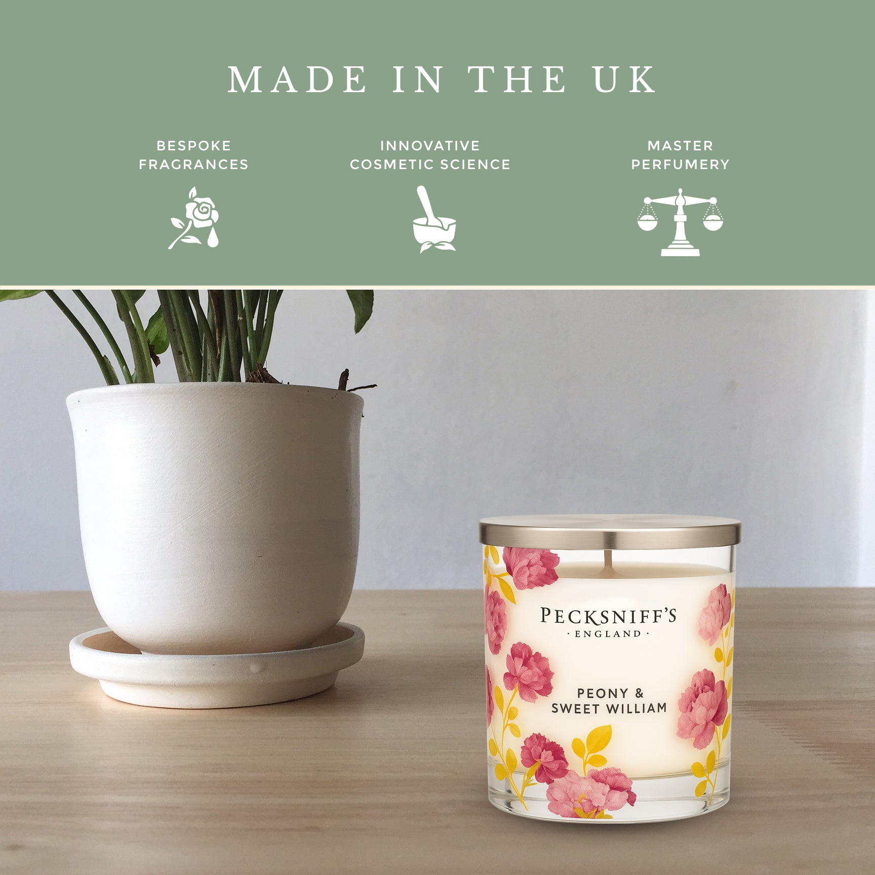 Pecksniff’s 1 Wick Candle – Peony & Sweet William, 184 g / 6.49 oz – Long Lasting Burn, Elegant Home Decor & Relaxing Ambiance