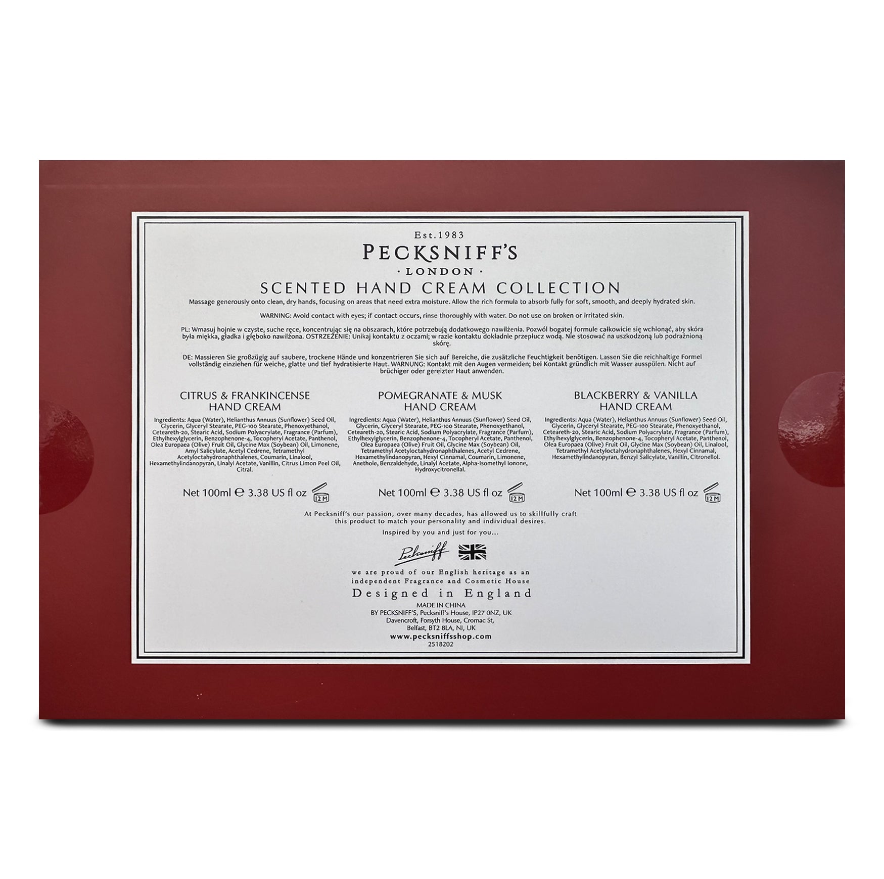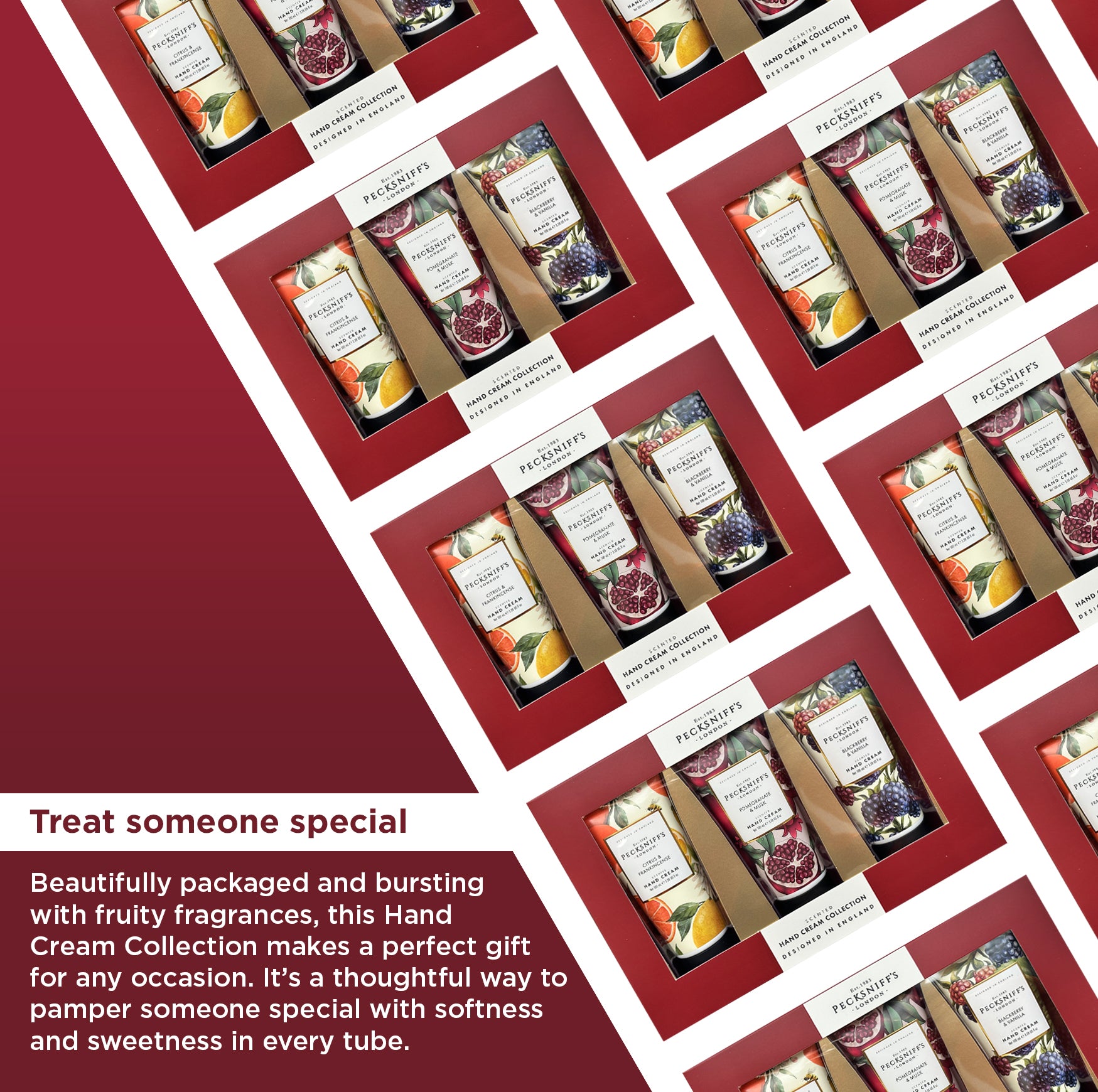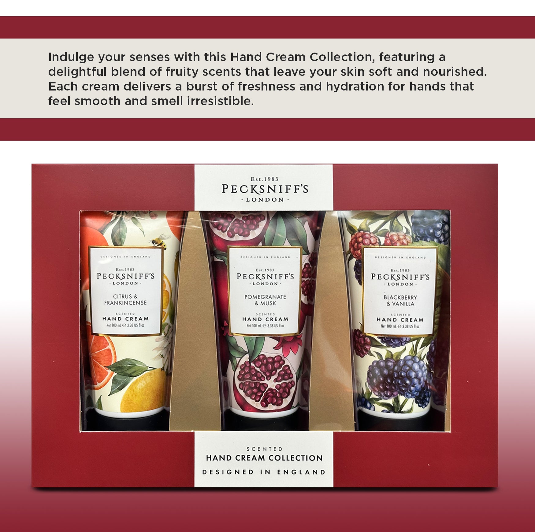 Elegantly boxed, this set makes a thoughtful gift for loved ones or a special treat for yourself. Experience the tradition of Pecksniff’s London skincare, crafted with care in England since 1983, and bring a touch of seasonal luxury to your hand care routine.