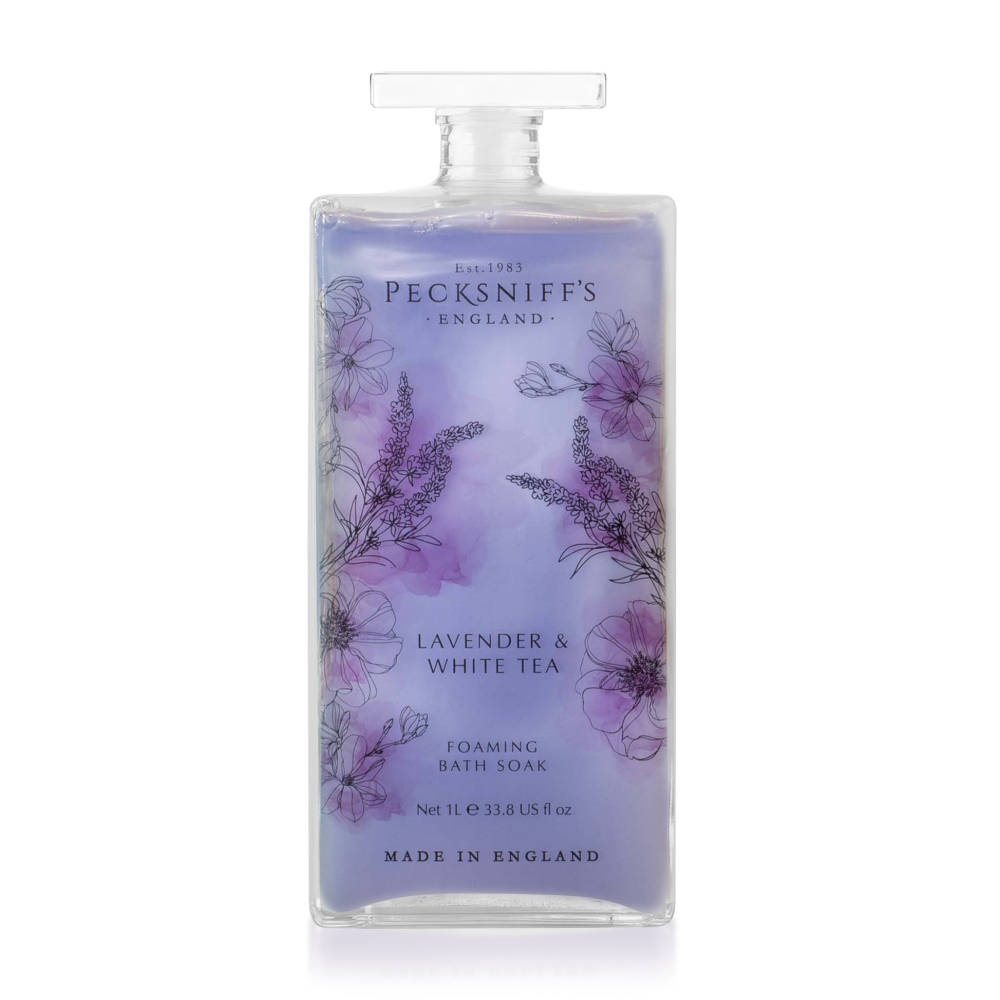 Pecksniff’s Lavender & White Tea Foaming Bath Soak – Luxury Bubble Bath, 1L / 33.8 fl oz, Made in England