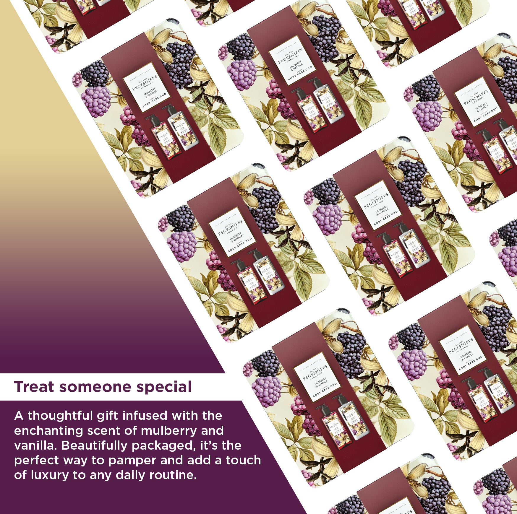 Rooted in British fragrance craftsmanship, Pecksniff’s continues its legacy of refined self-care and timeless design. This Mulberry & Vanilla Body Care Duo offers both indulgence and practicality—an elegant addition to your bath or vanity that you’ll love using every day.