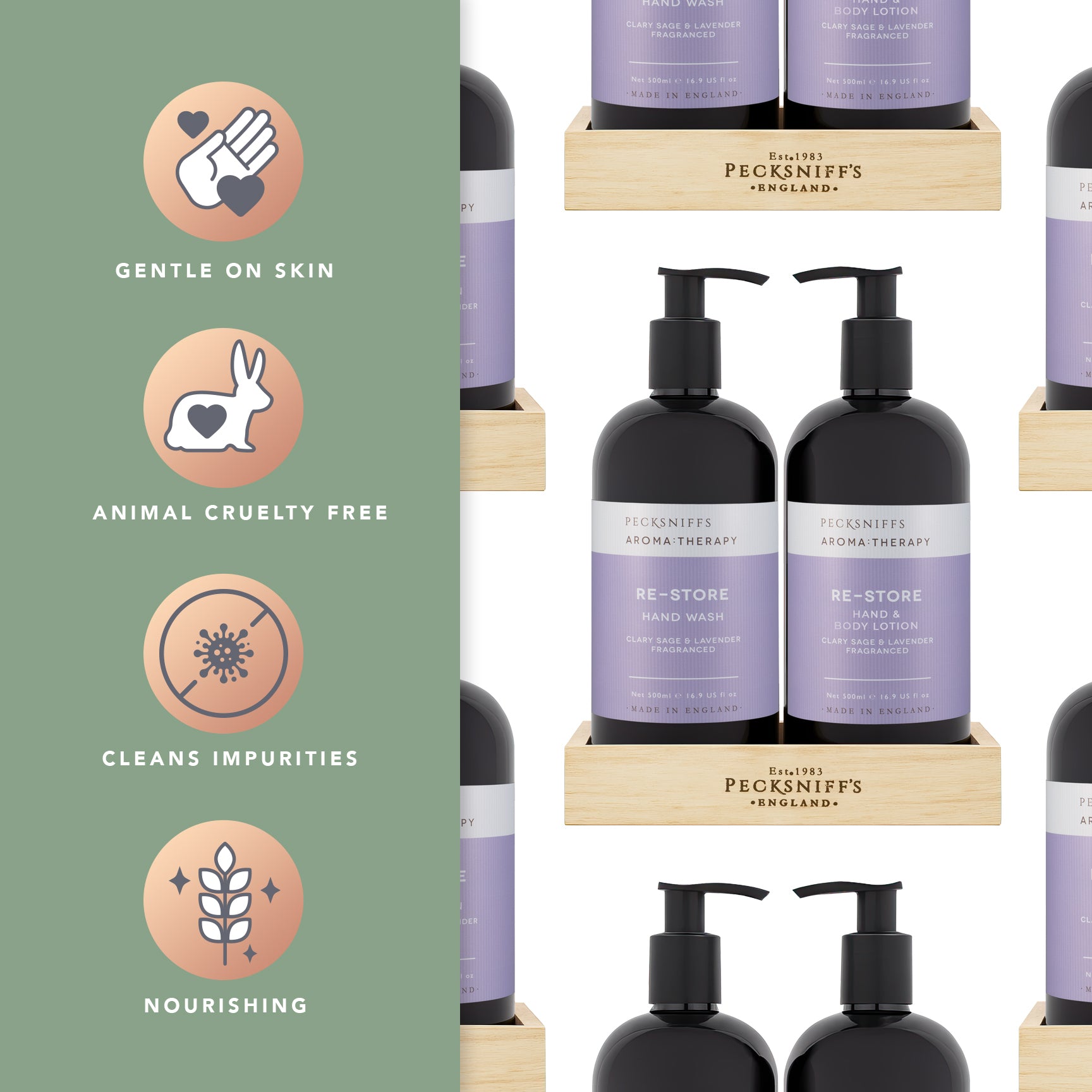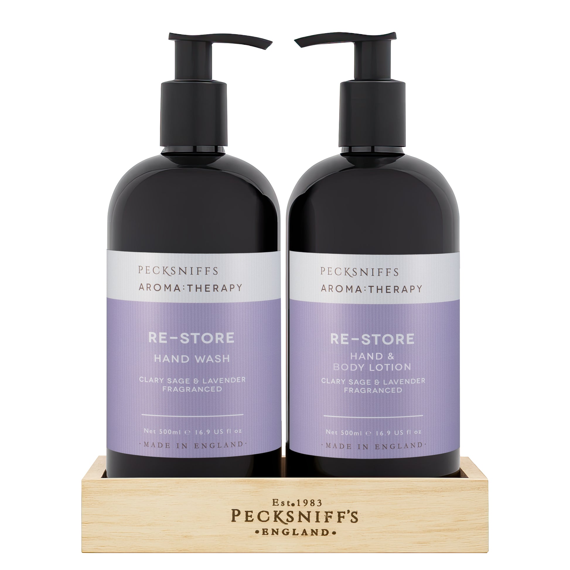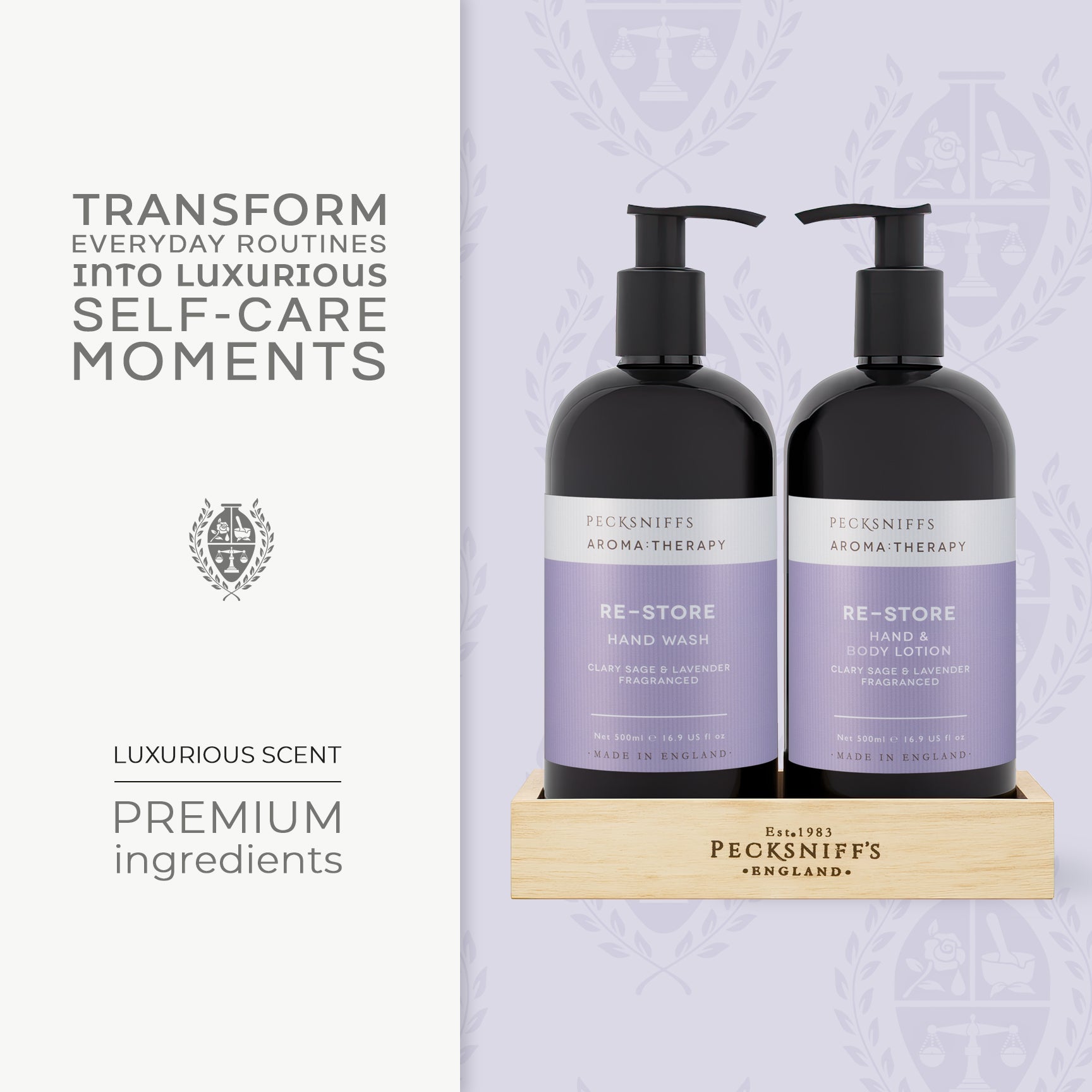 Pecksniff's Aroma:Therapy Re-Store Duo Caddy, 500 ml/16.9 fl oz Hand Wash and 500 ml/16.9 fl oz Hand & Body Lotion