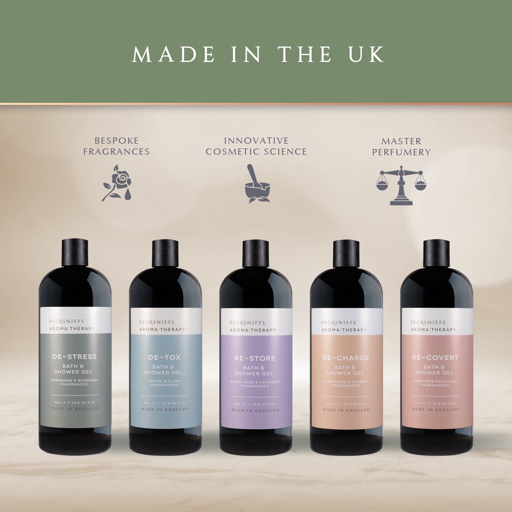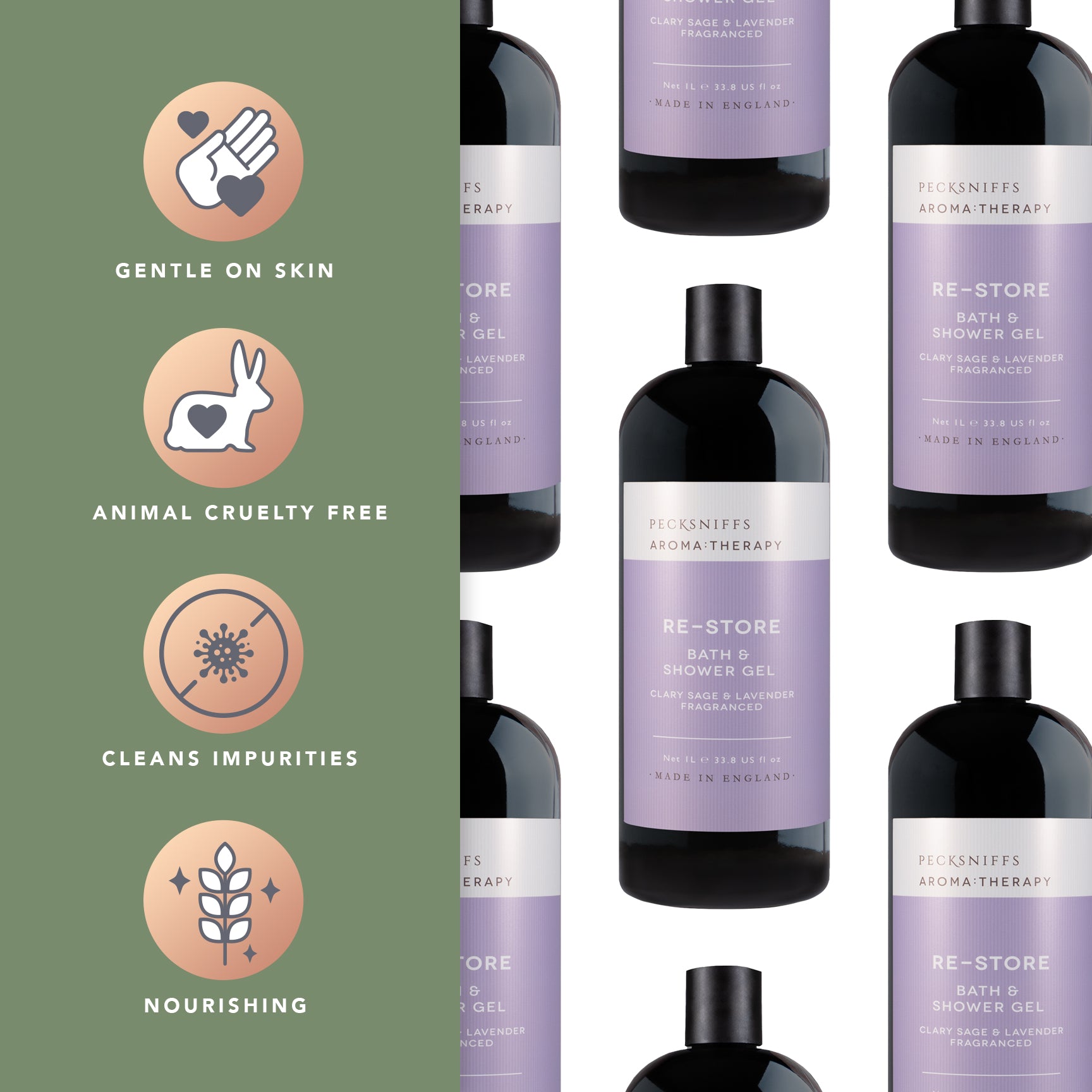 Pecksniff's Aroma:Therapy Re-Store Shower Gel – Luxurious Moisturizing Bath & Body Cleanser, 1000 ml/33.8 fl oz Bottle