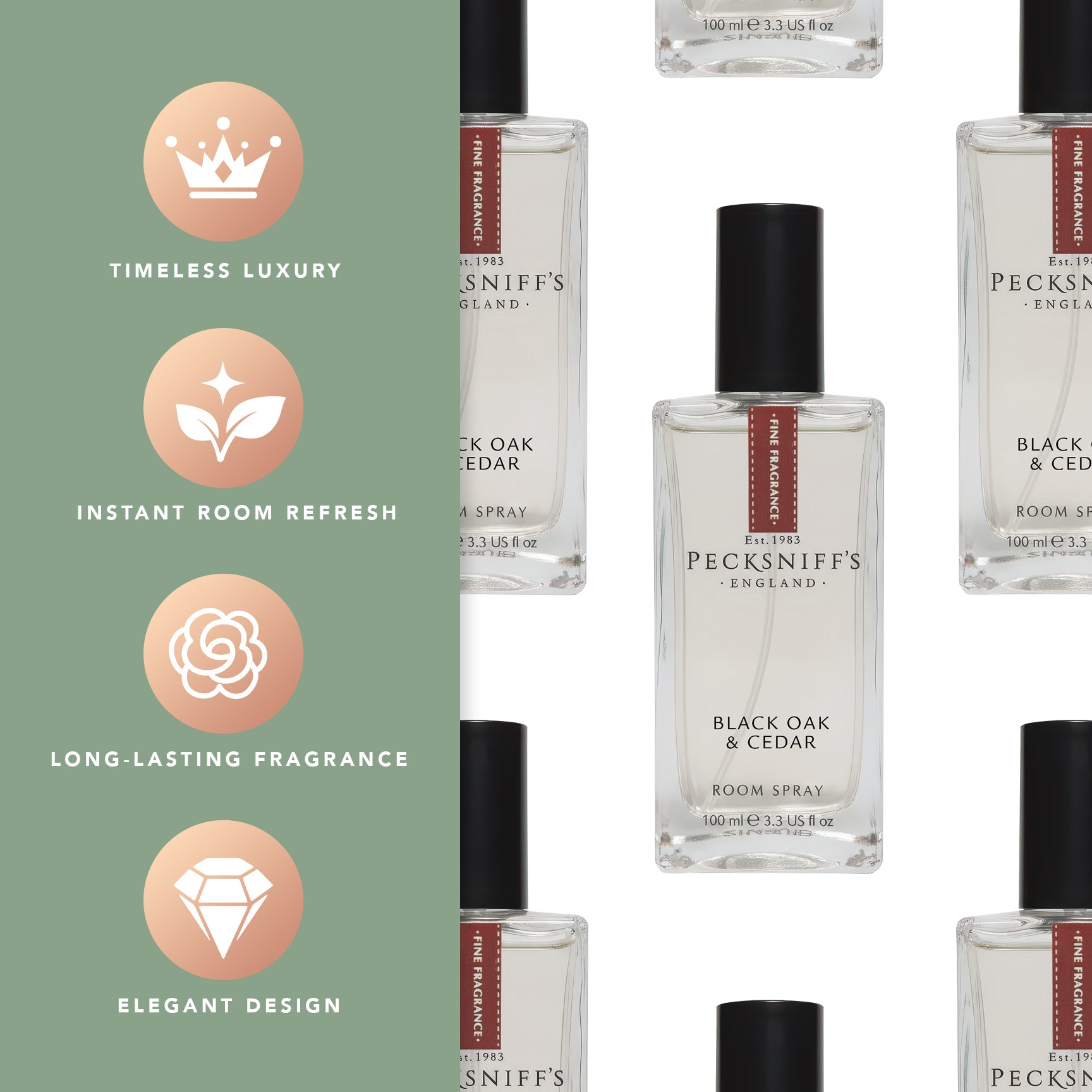 Pecksniffs Black Oak & Cedar Classic Room Spray | 100ml/3.38 Fl Oz