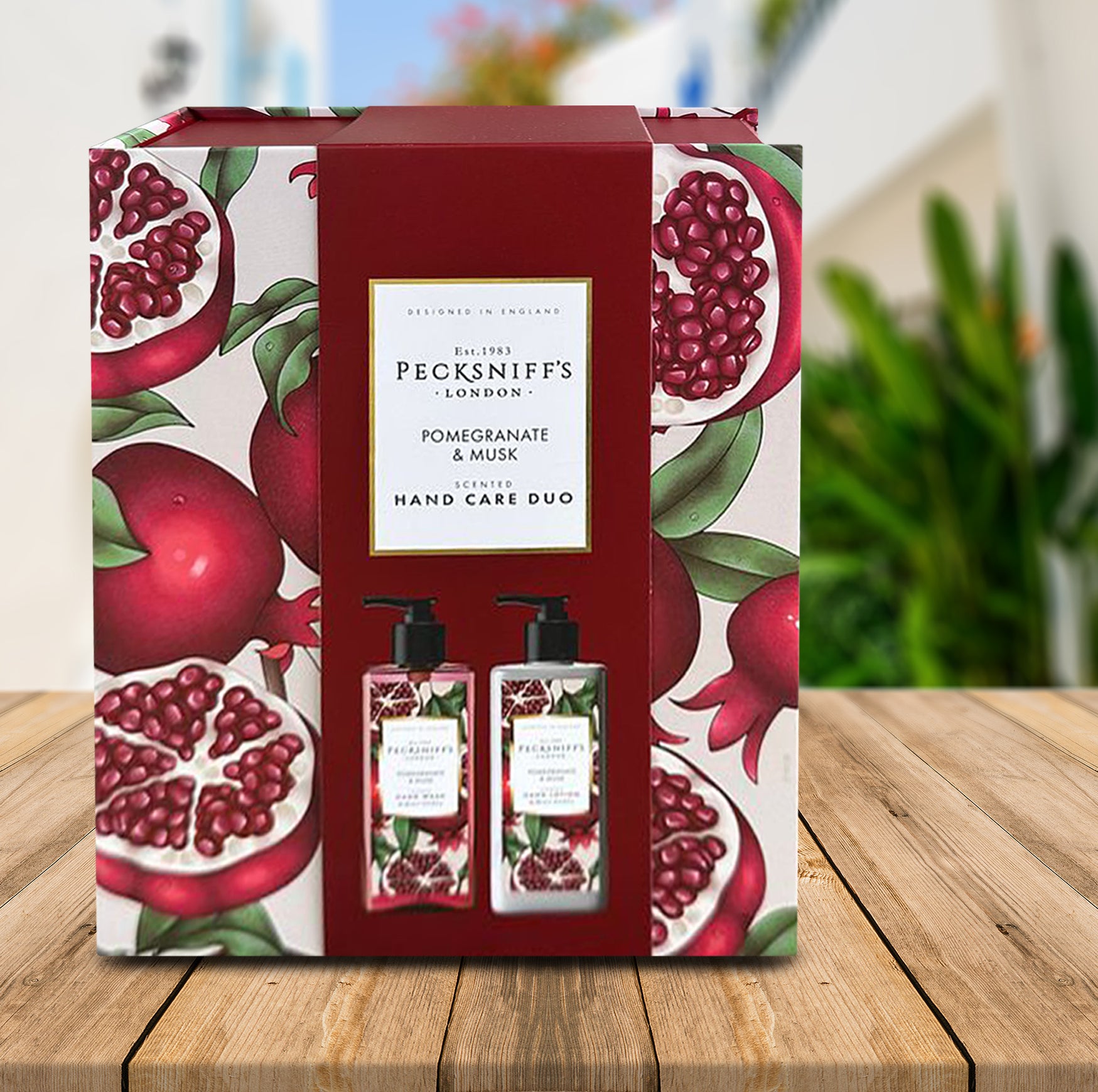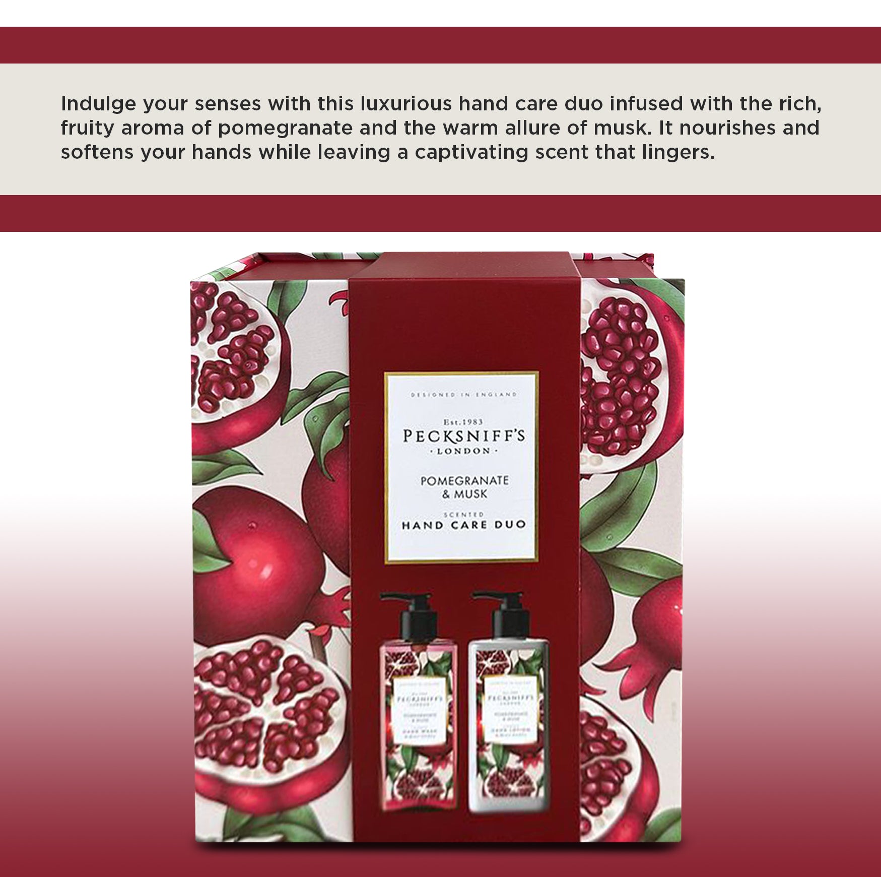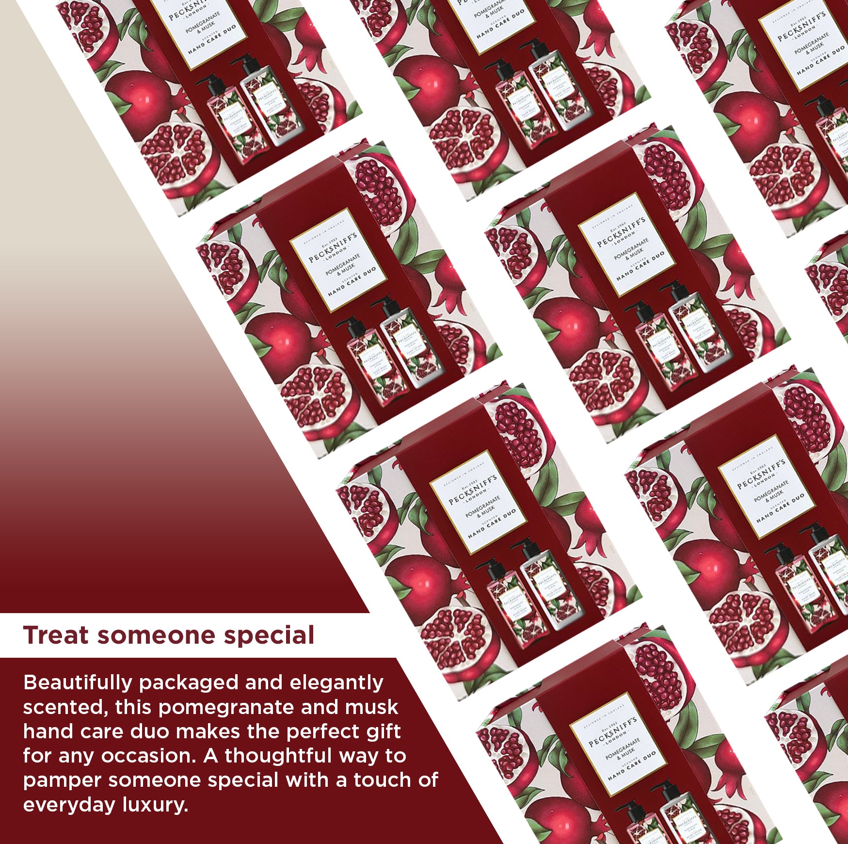 Pecksniff’s Enchanted Winter Hand Care Duo, Pomegranate & Musk, Hard Box Gift Set with 300ml Hand Wash and 300ml Hand Lotion, Designed in England
