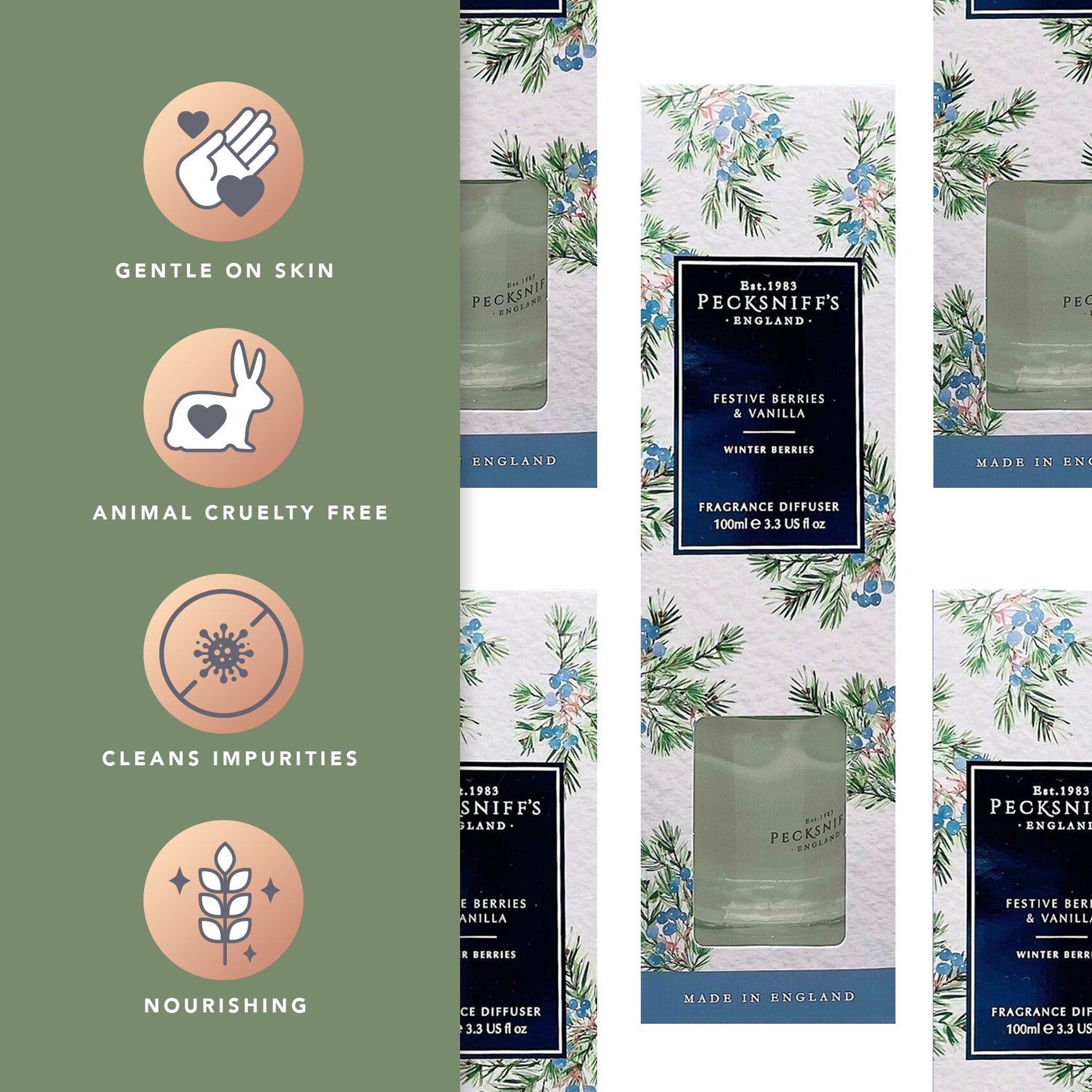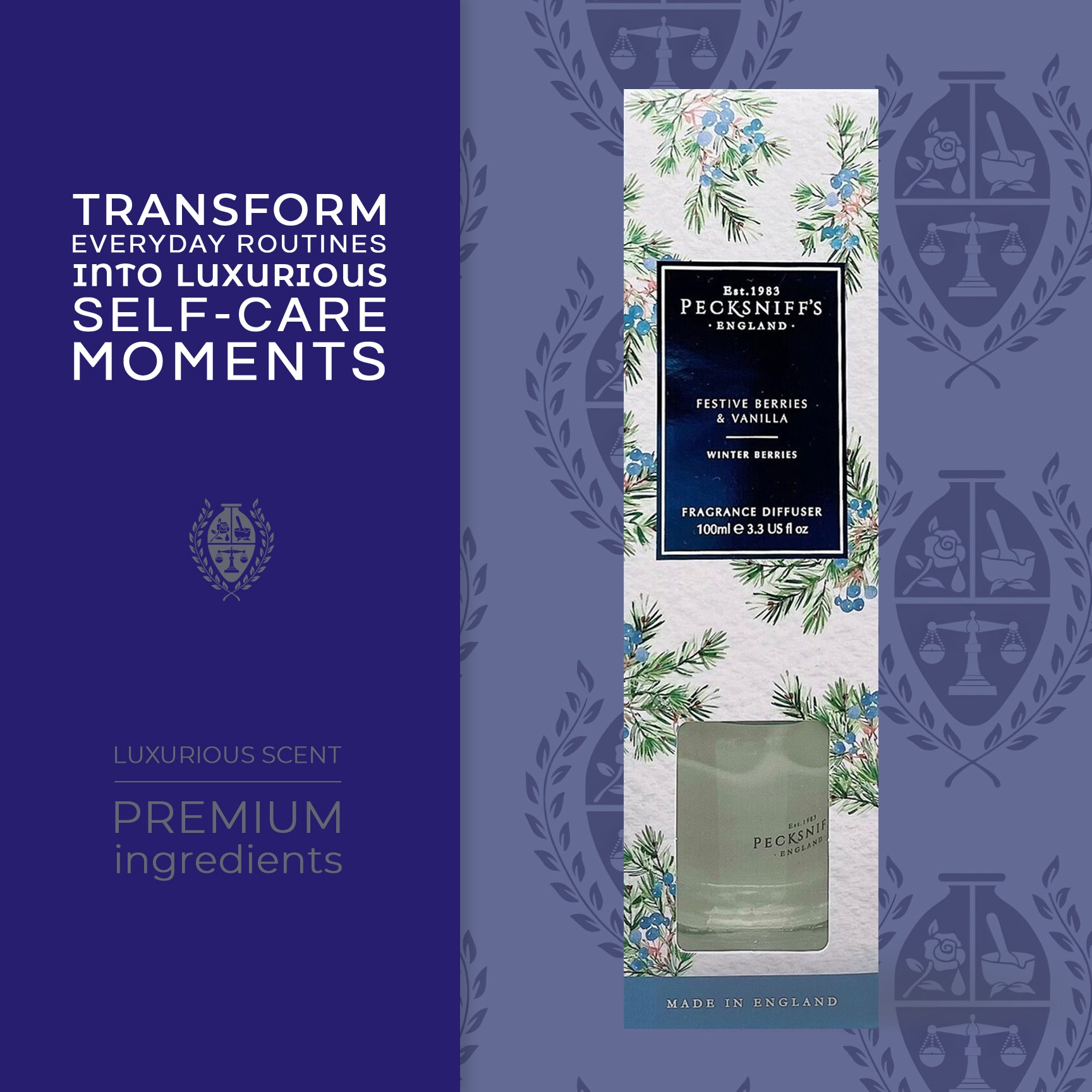 Pecksniff's Festive Berries and Vanilla Diffuser | 100ml/3.38 Fl Oz