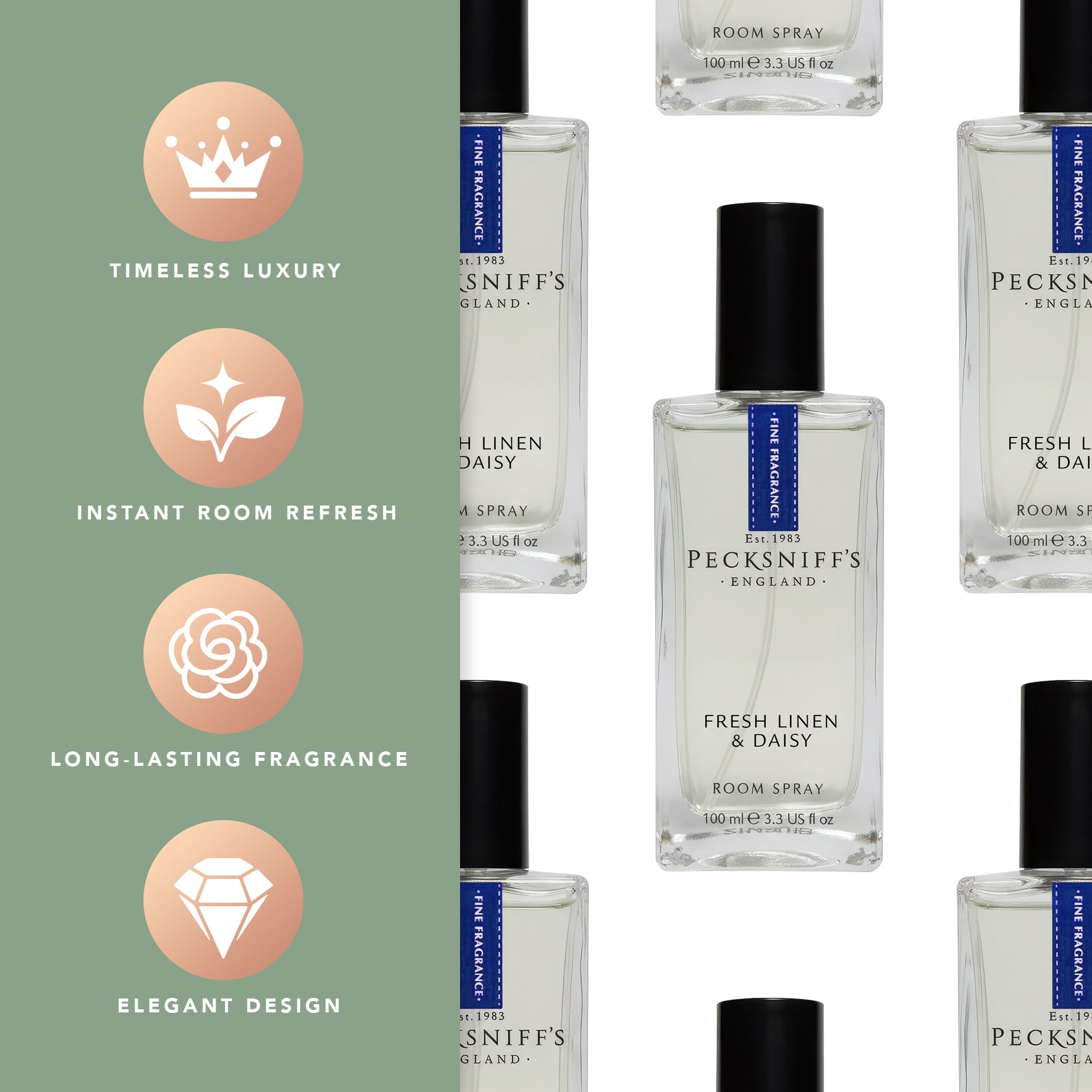 Pecksniffs Fresh Linen & Daisy Square Room Spray | 100ml/3.38 Fl Oz