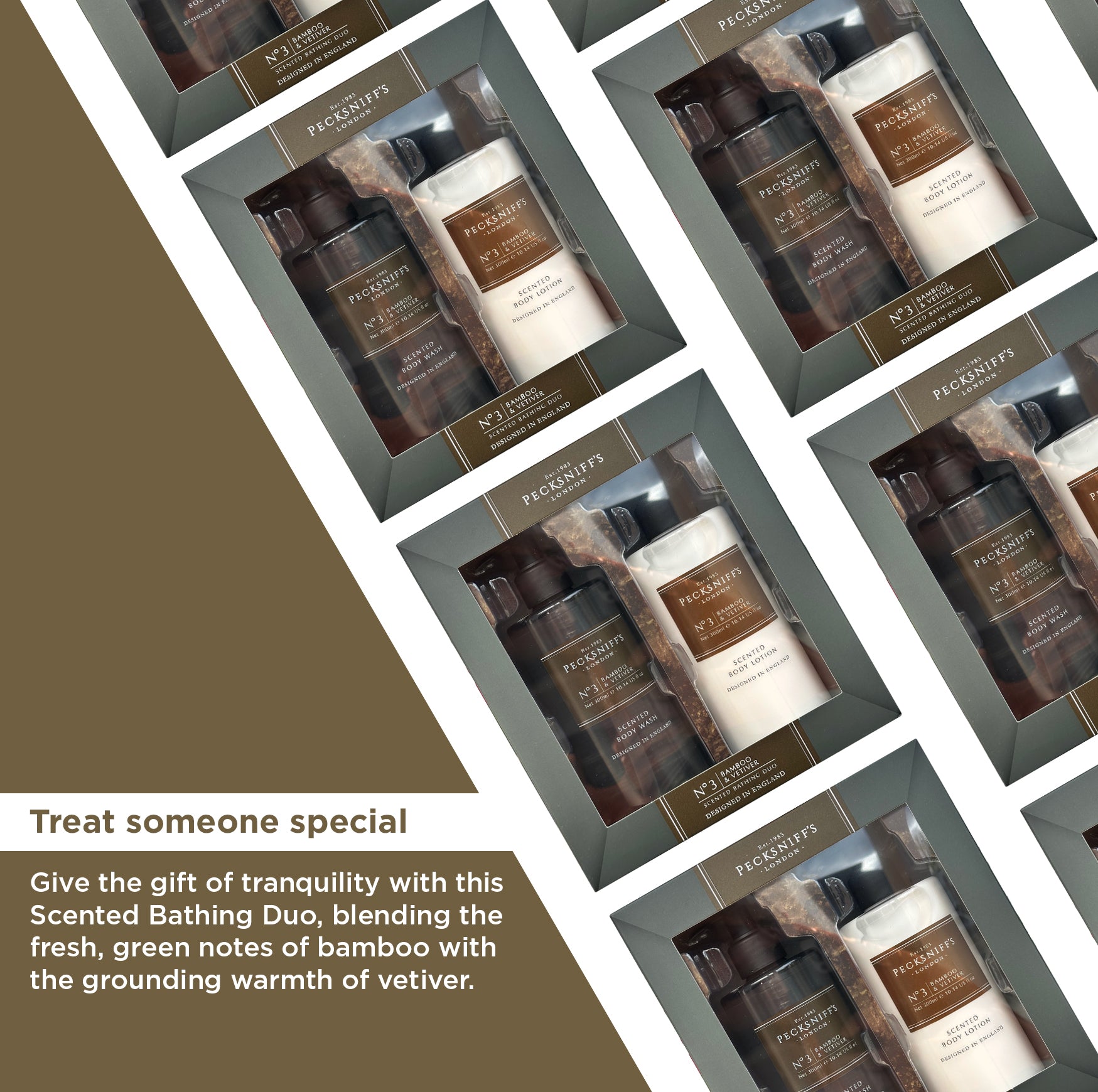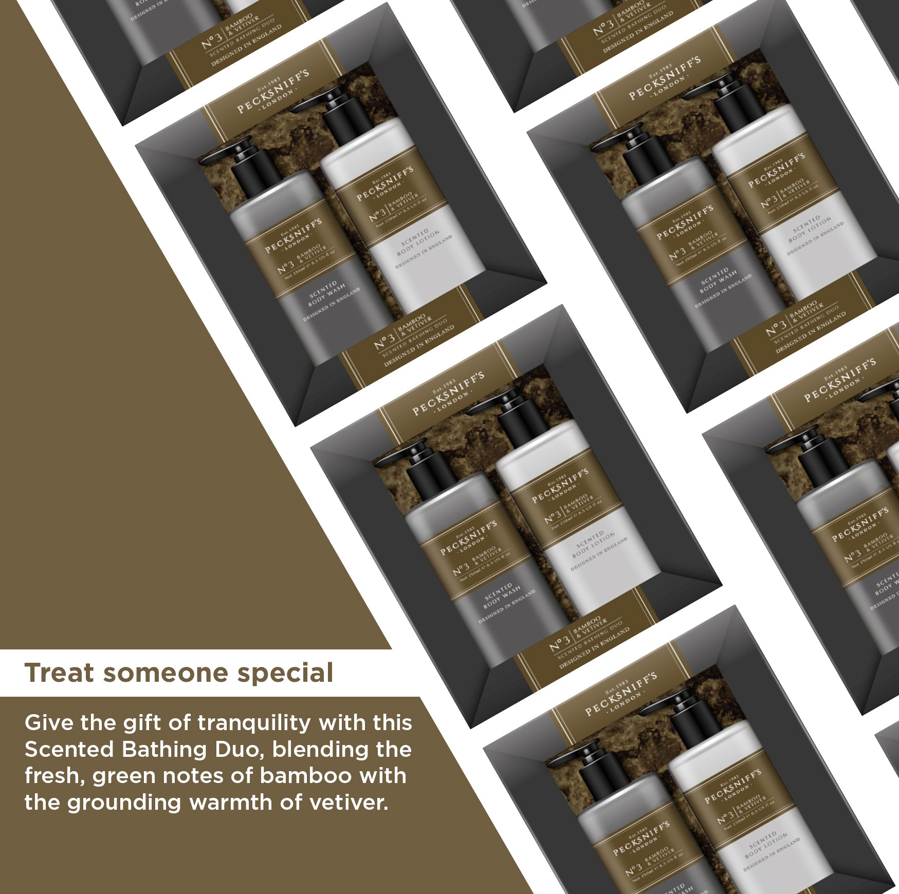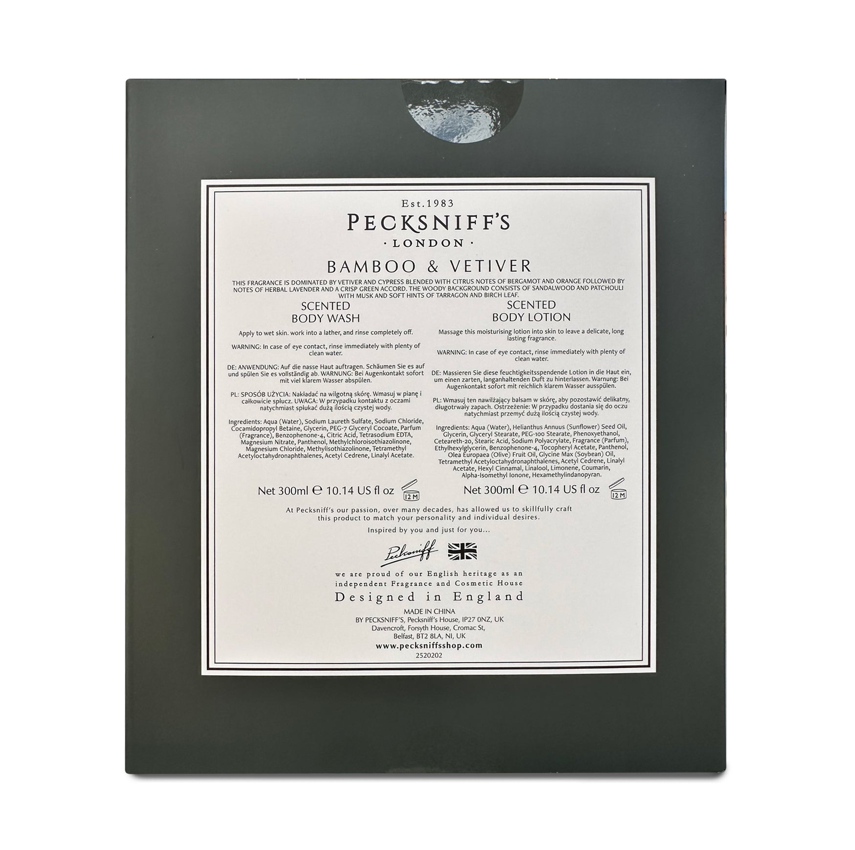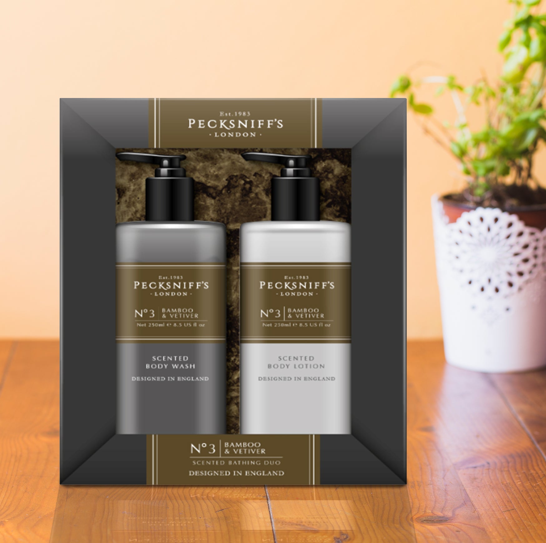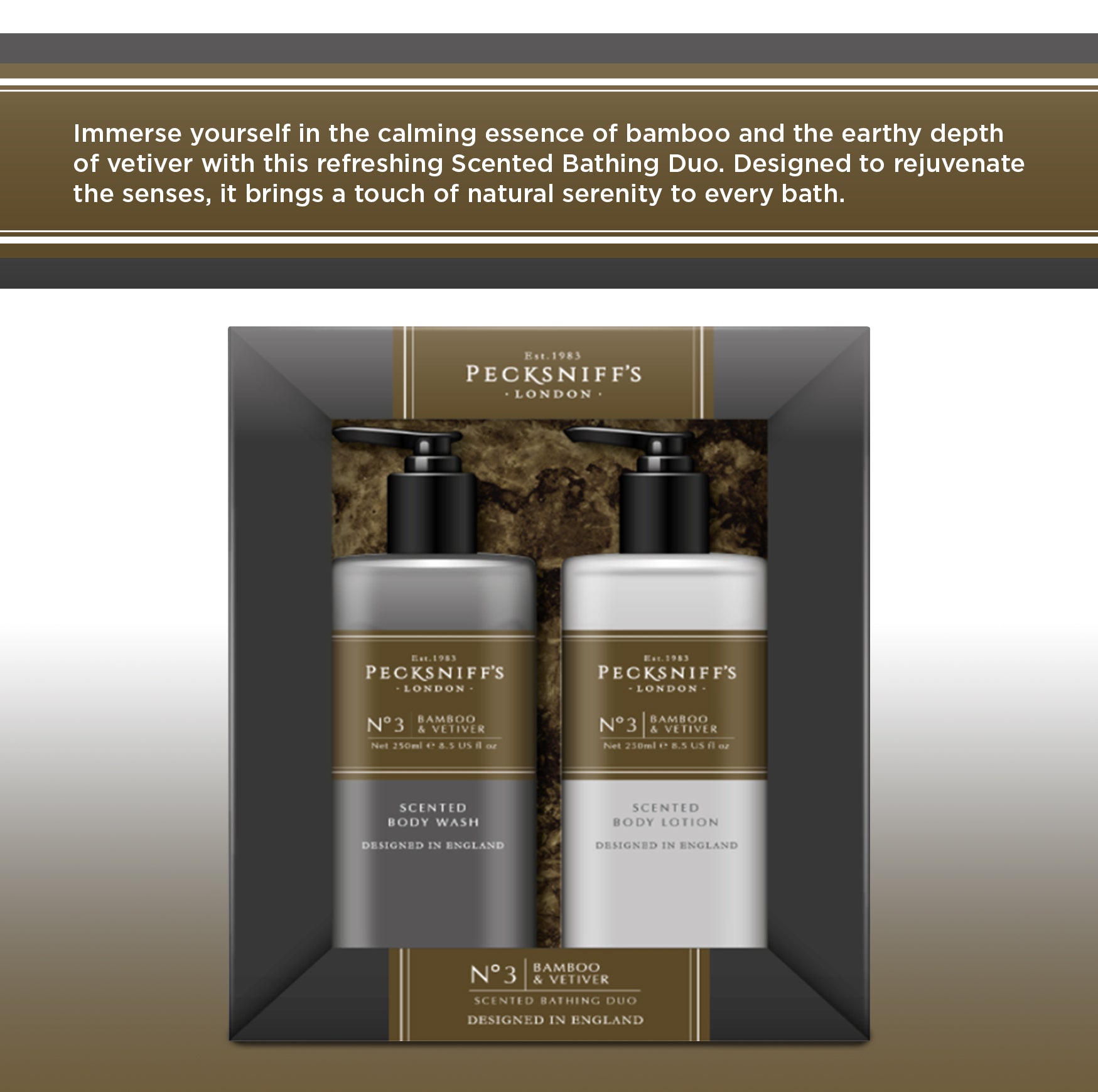 Pecksniffs Mens Bathing Duo Collection – Bamboo & Vetiver Scented Body Wash and Body Lotion Gift Set, 2 x 250ml