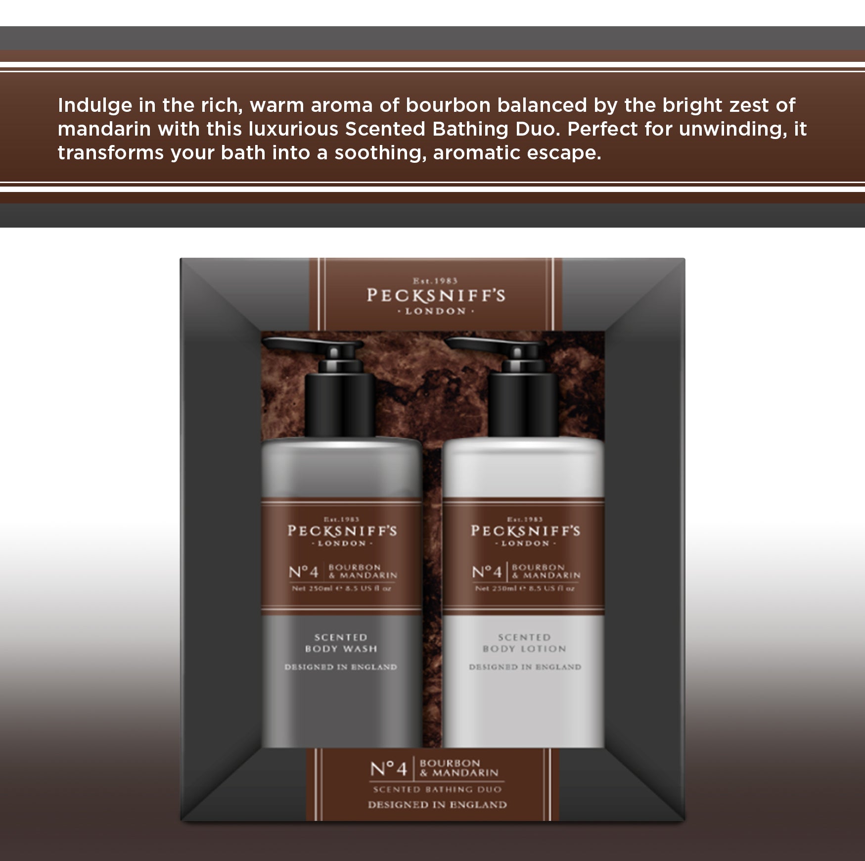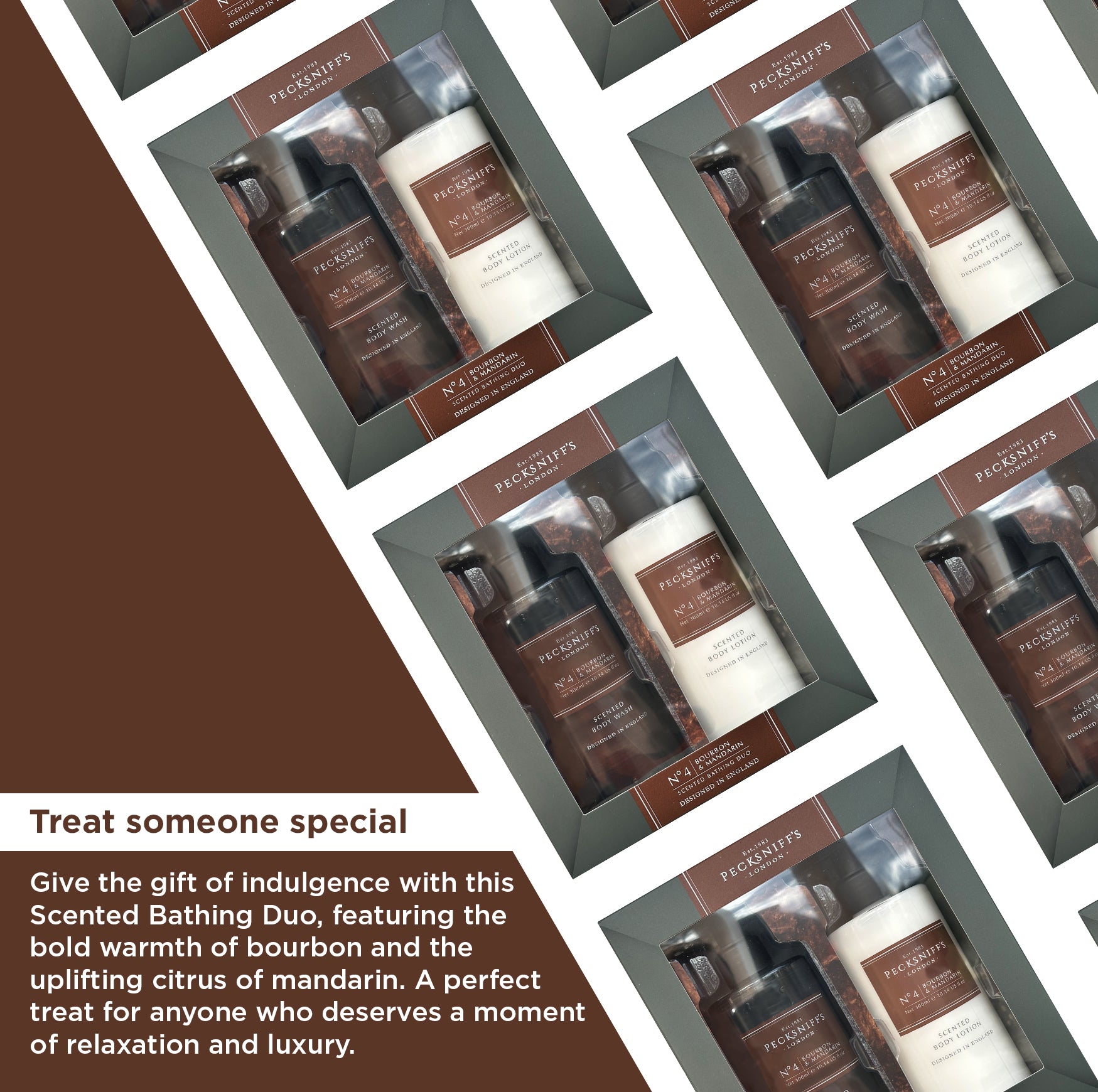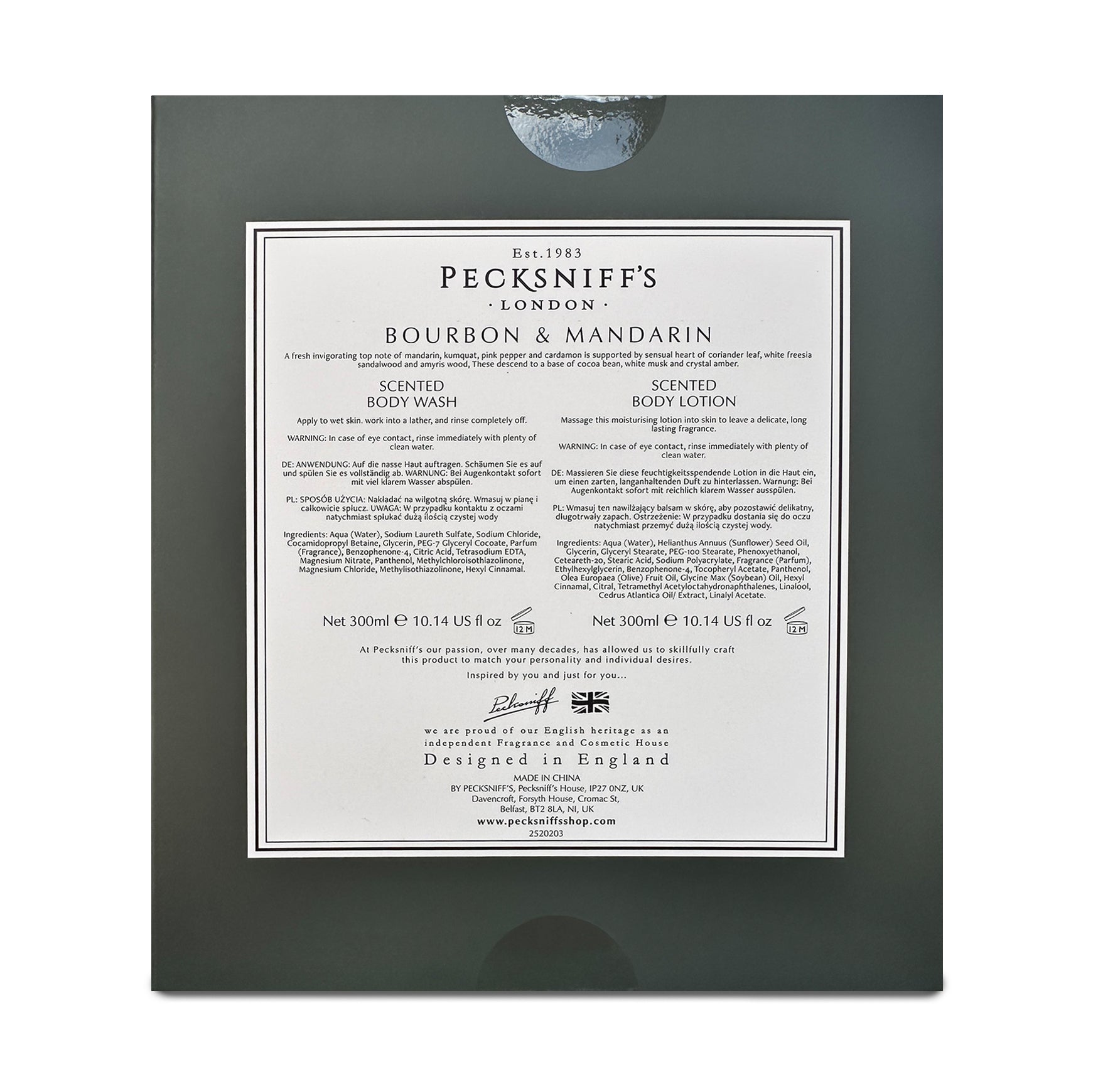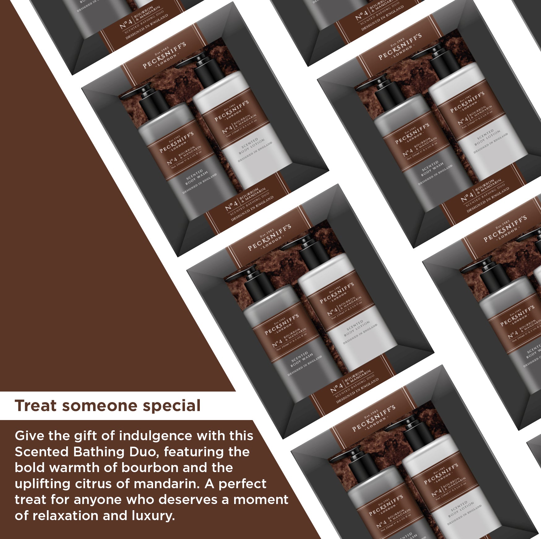 Pecksniffs Mens Bathing Duo Collection – Bourbon & Mandarin Scented Body Wash and Body Lotion Gift Set, 2 x 250ml