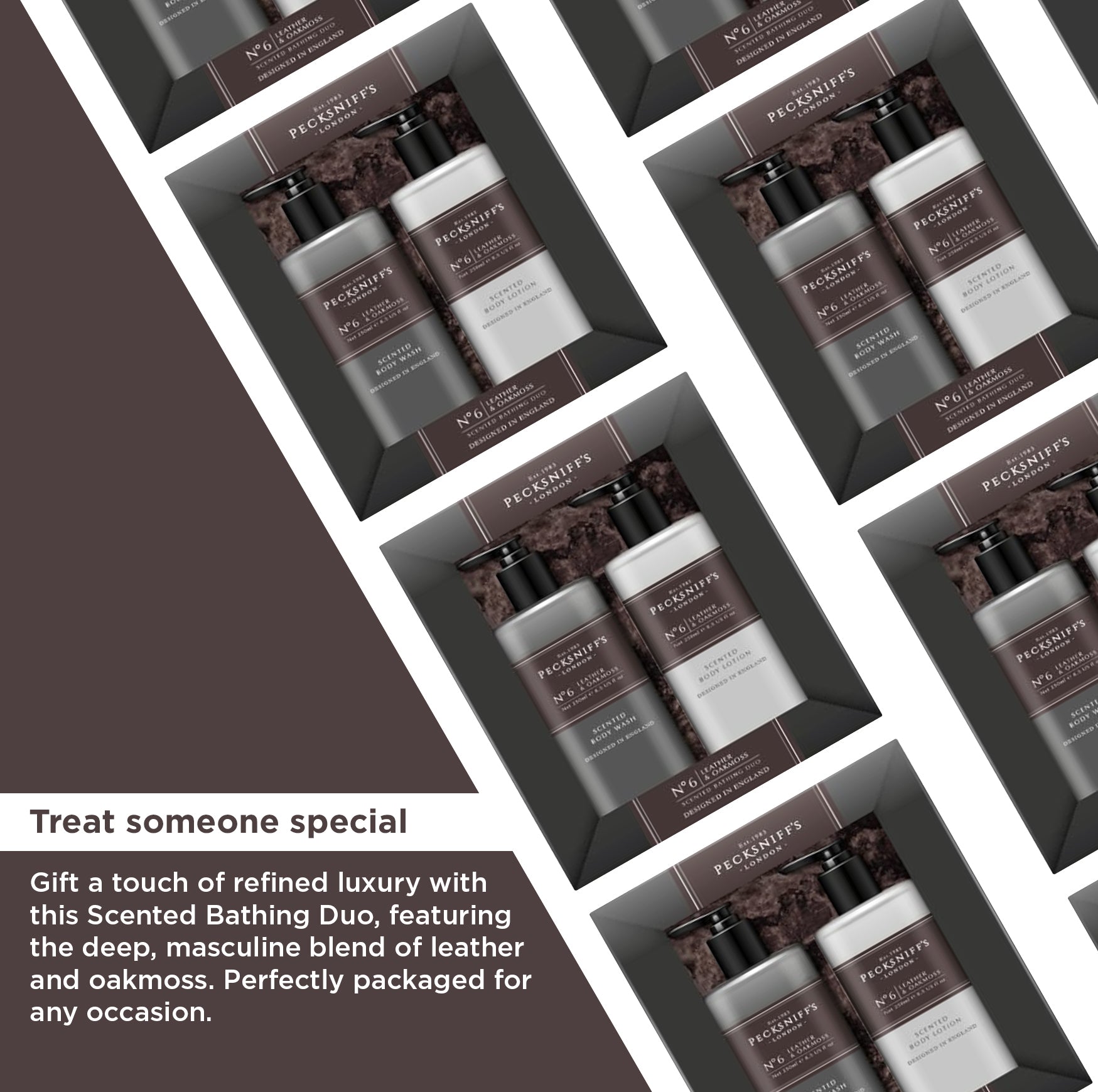 Pecksniffs Mens Bathing Duo Collection – Leather & Oakmoss Scented Body Wash and Body Lotion Gift Set, 2 x 250ml