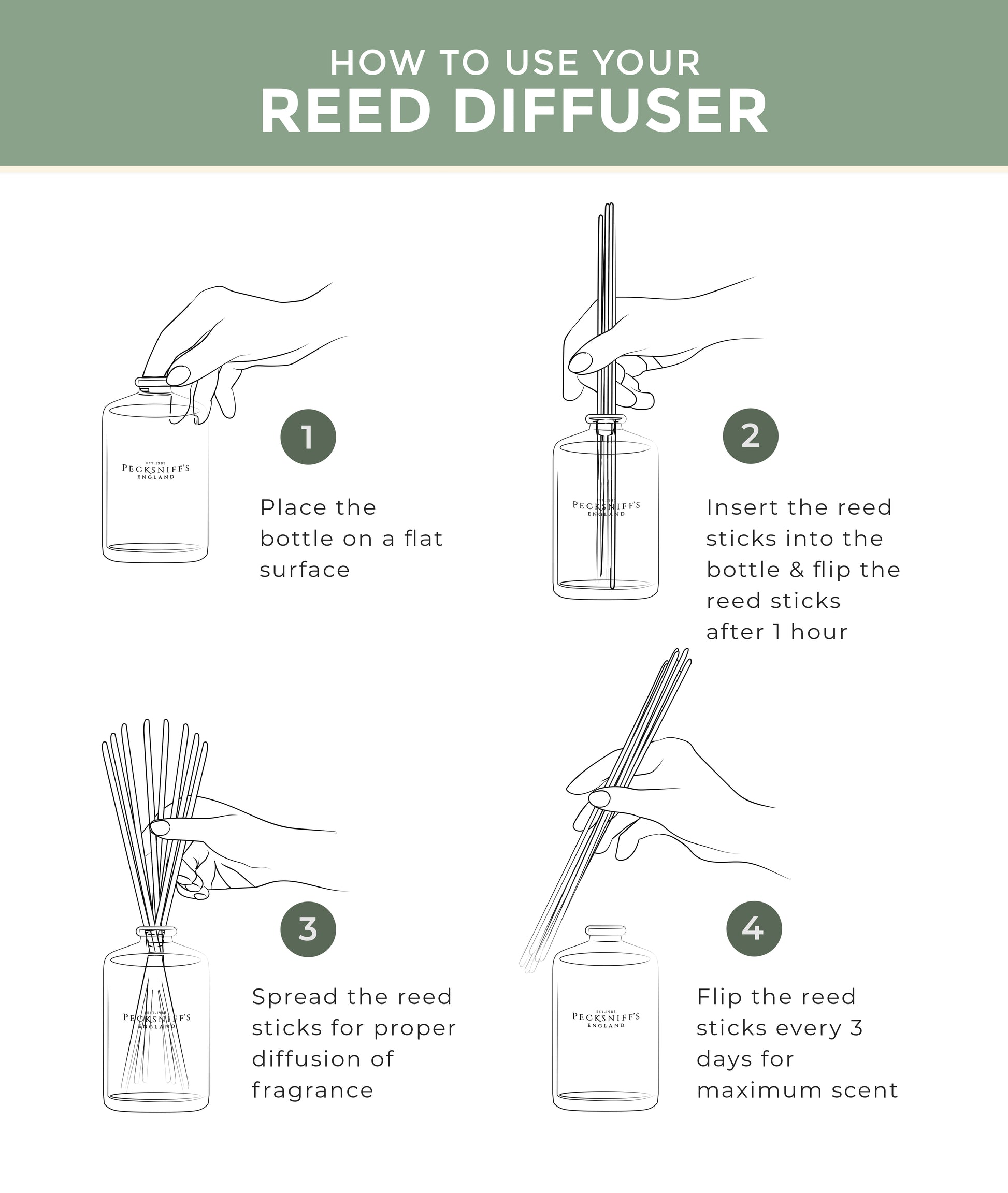 Why choose Pecksniffs? Because you deserve a home fragrance that is as unique as you are. Our diffuser is made with high-quality ingredients that ensure purity and longevity, so the tranquil aroma lingers for hours. It's a great choice for those who love to keep their living spaces fresh and inviting. Also, it makes an excellent gift for anyone who appreciates the finer things in life.