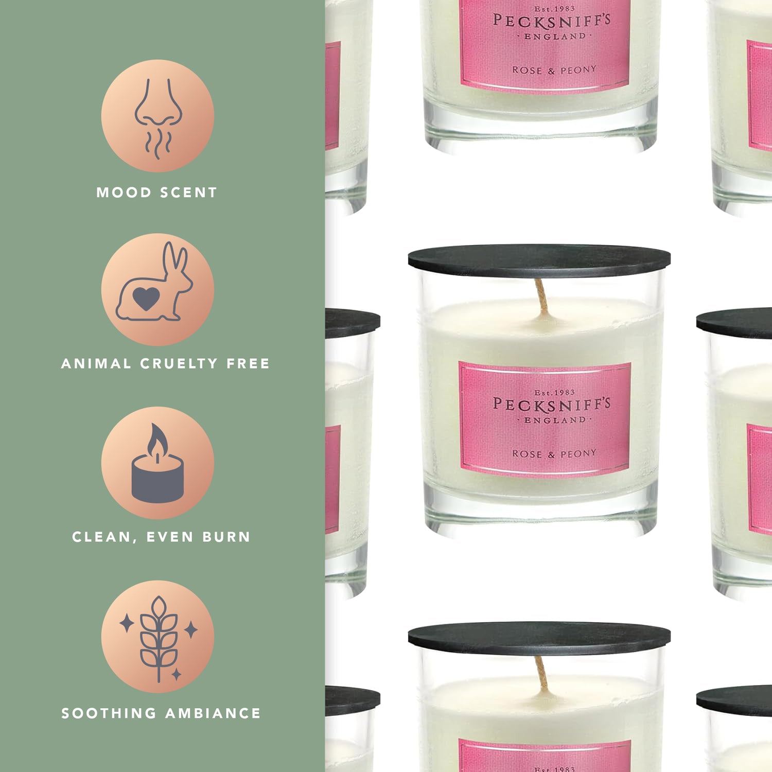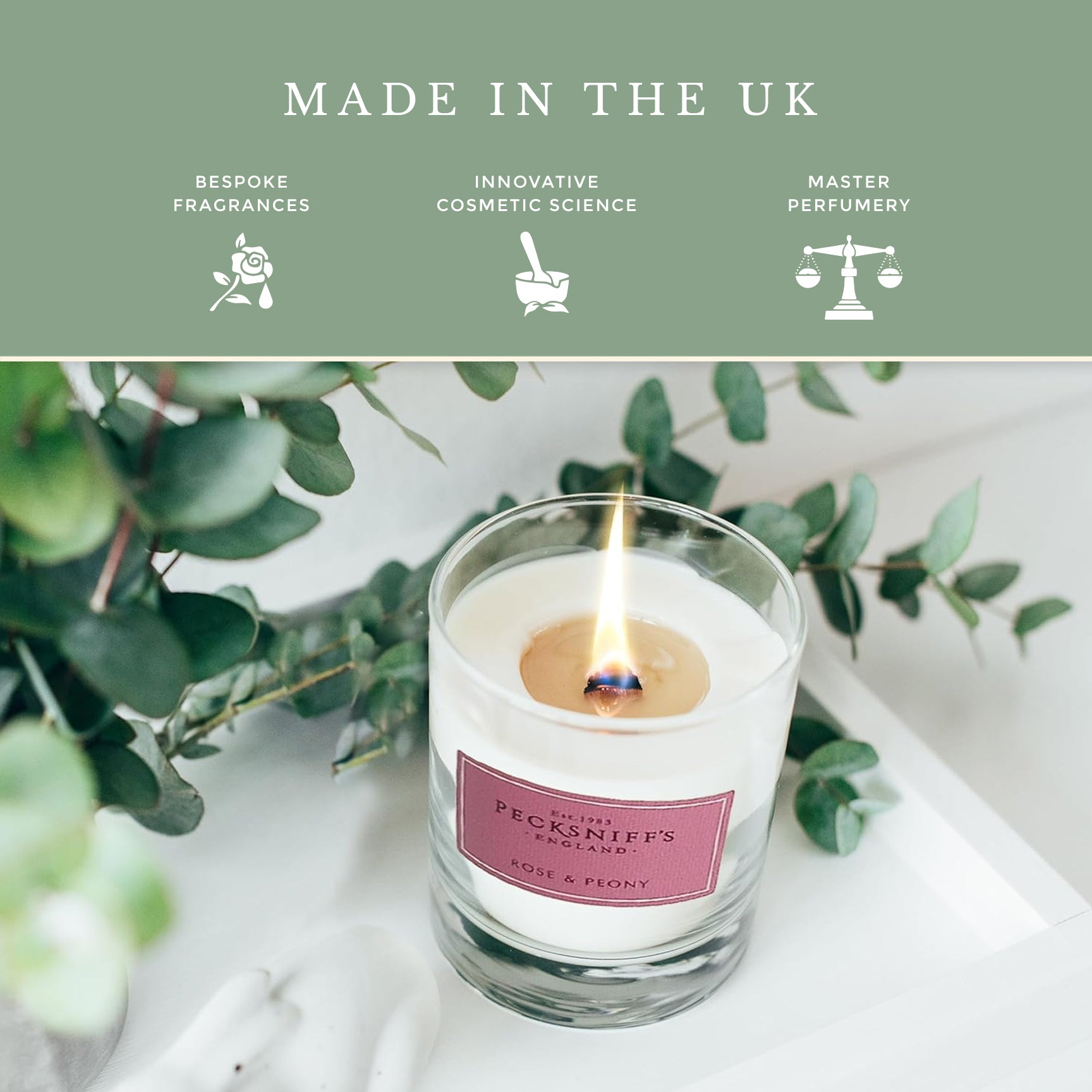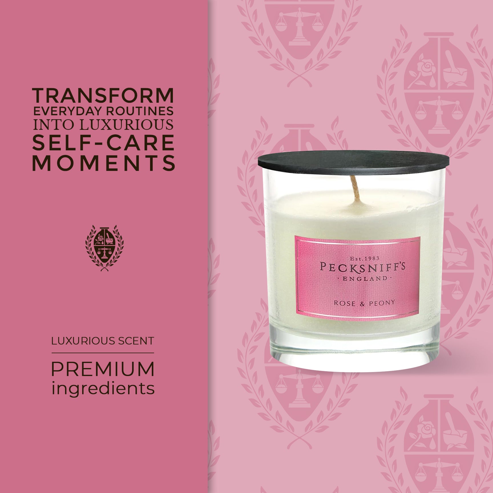 Pecksniff's Classic Rose & Peony Scented Candle | 1 Wick, 184g/6.49oz