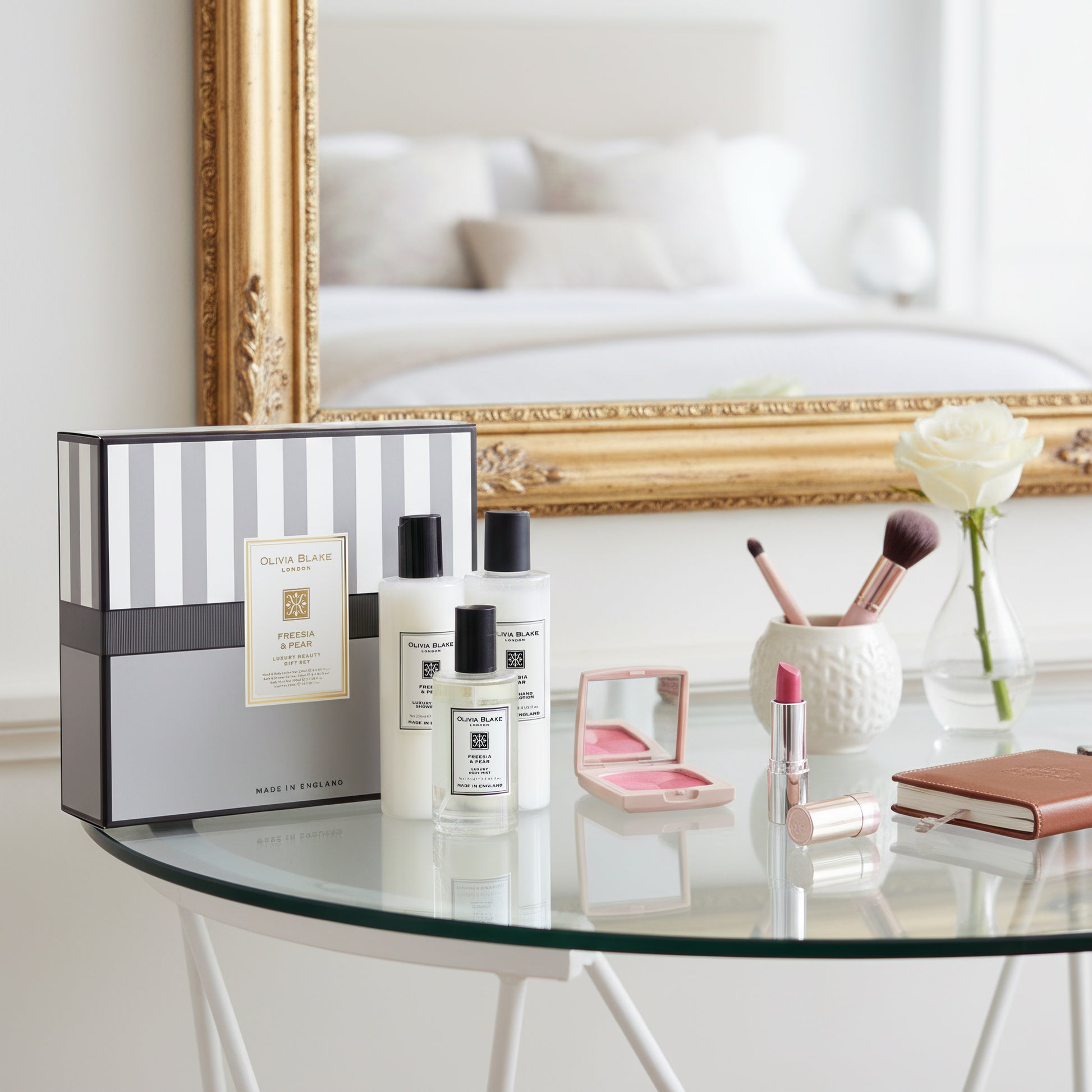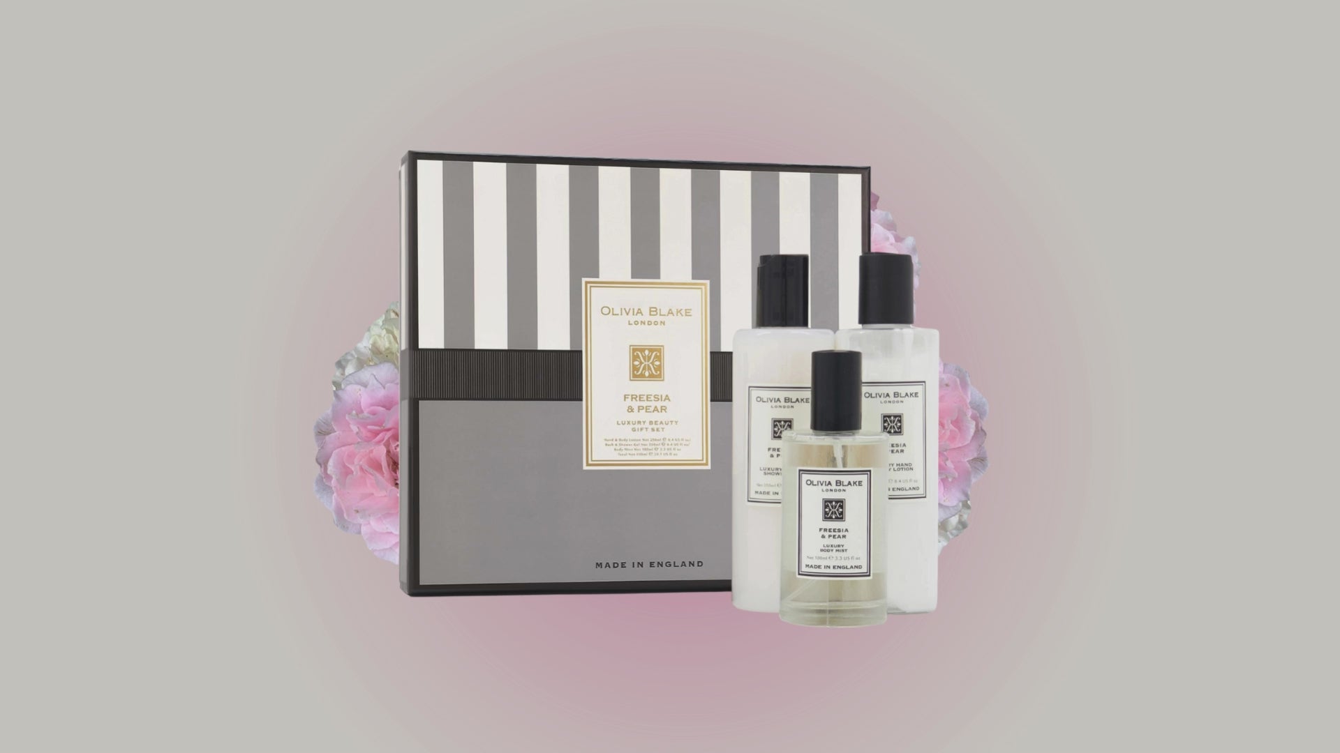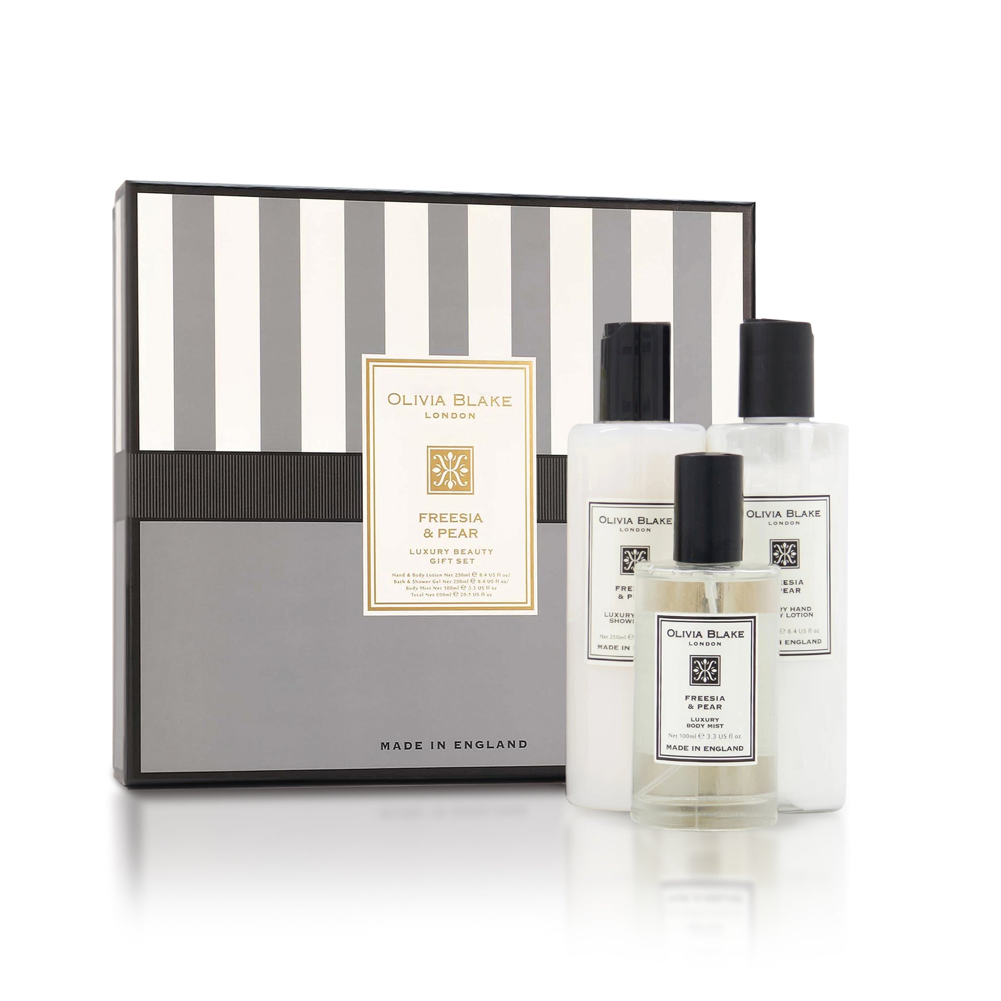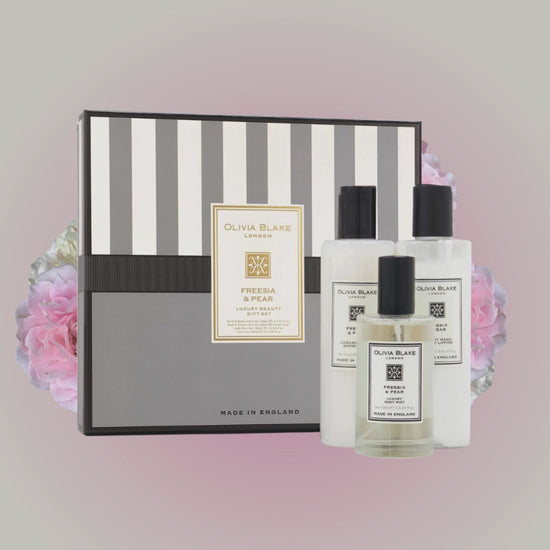 Olivia Blake Freesia & Pear Trio Gift Set – 100 ml/3.38 fl oz Body Mist, 250 ml/8.45 fl oz Shower Gel, 250 ml/8.45 fl oz Body Lotion – Luxurious Everyday Essentials for Women